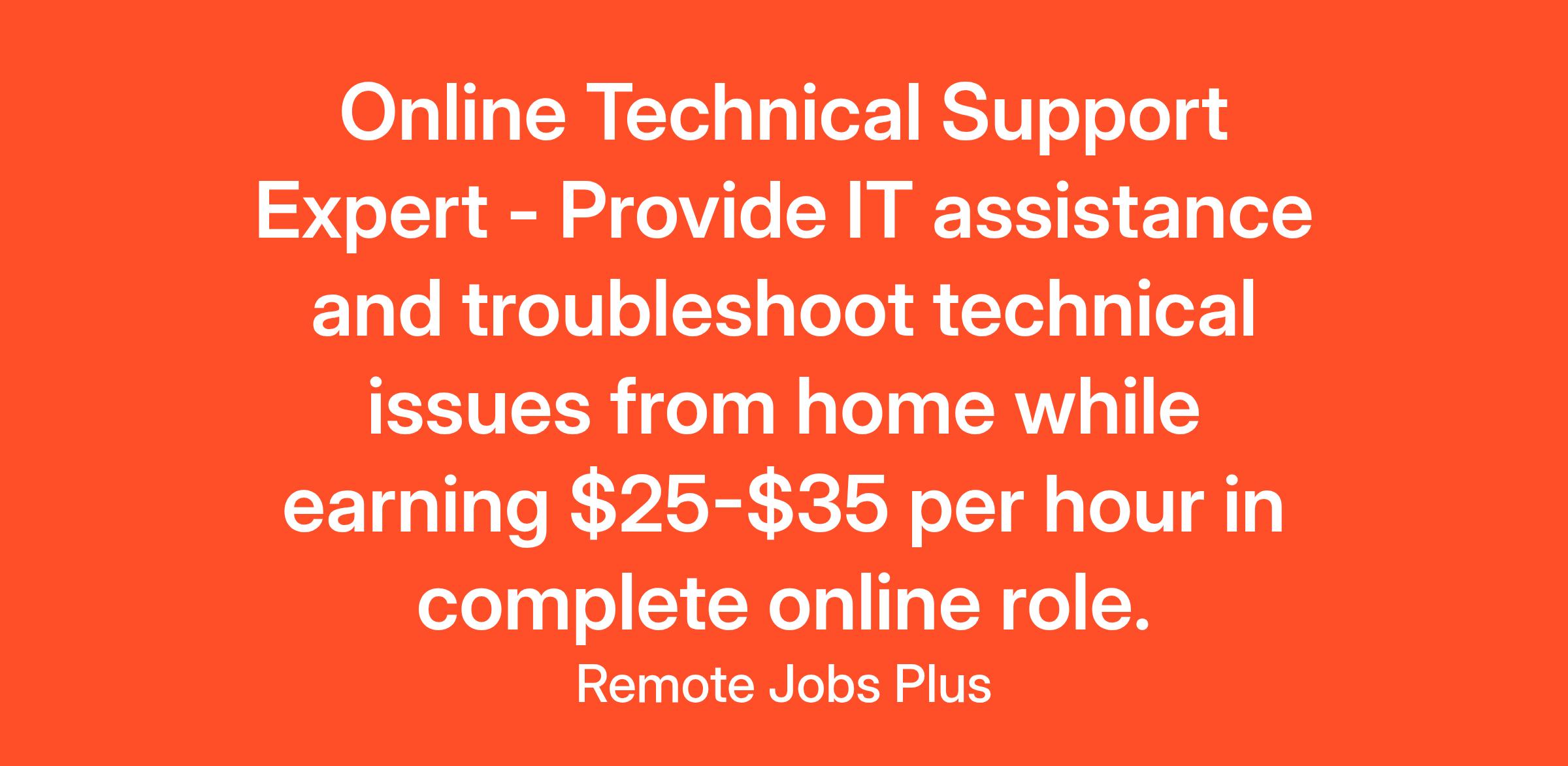 Online Technical Support Expert - Provide IT assistance and troubleshoot technical issues from home while earning $25-$35 per hour in complete online role.