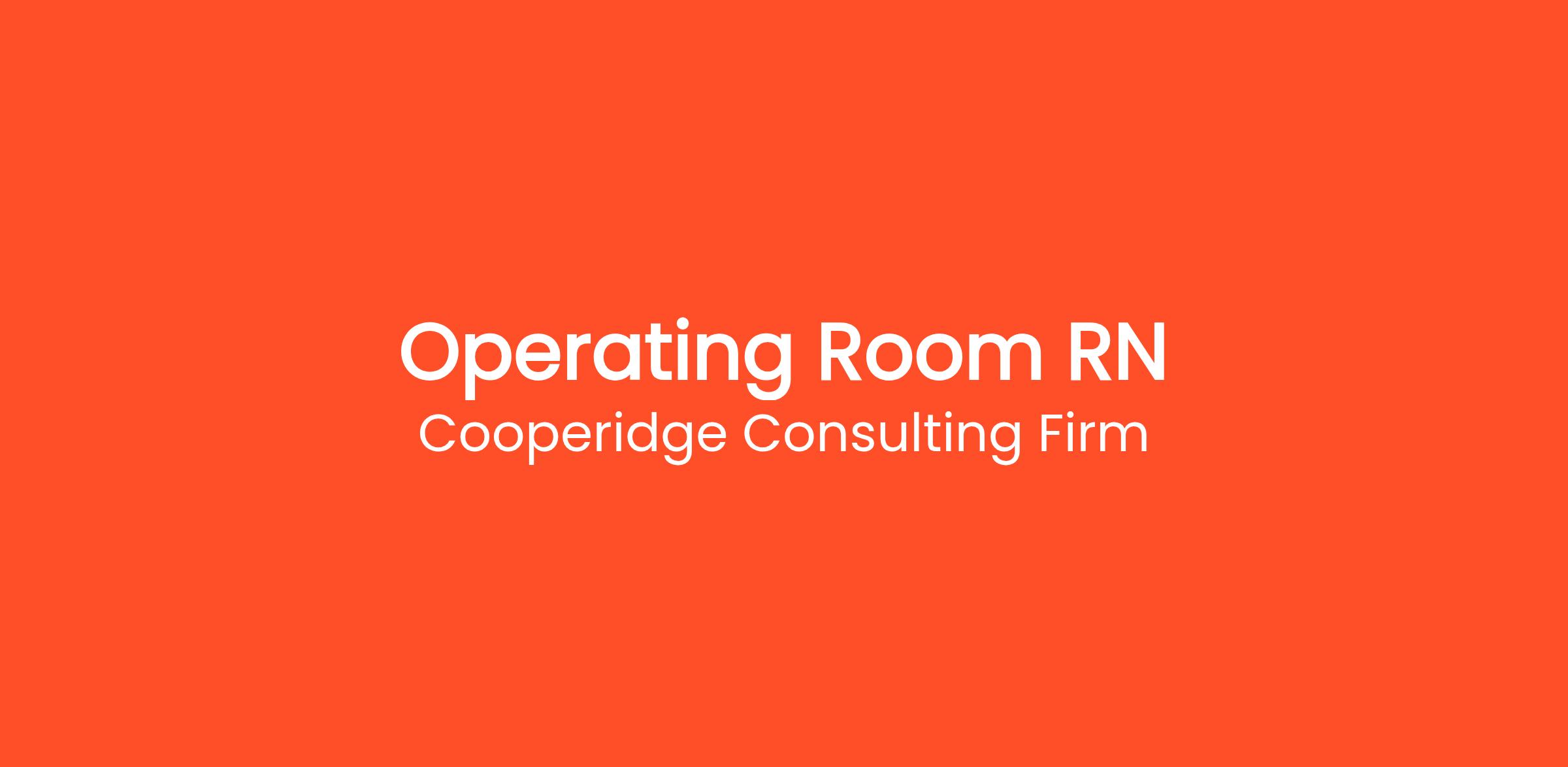 Cooperidge Consulting Firm is seeking Operating Room Registered Nurses (OR RNs) for a top healthcare client in Kansas City, KS.