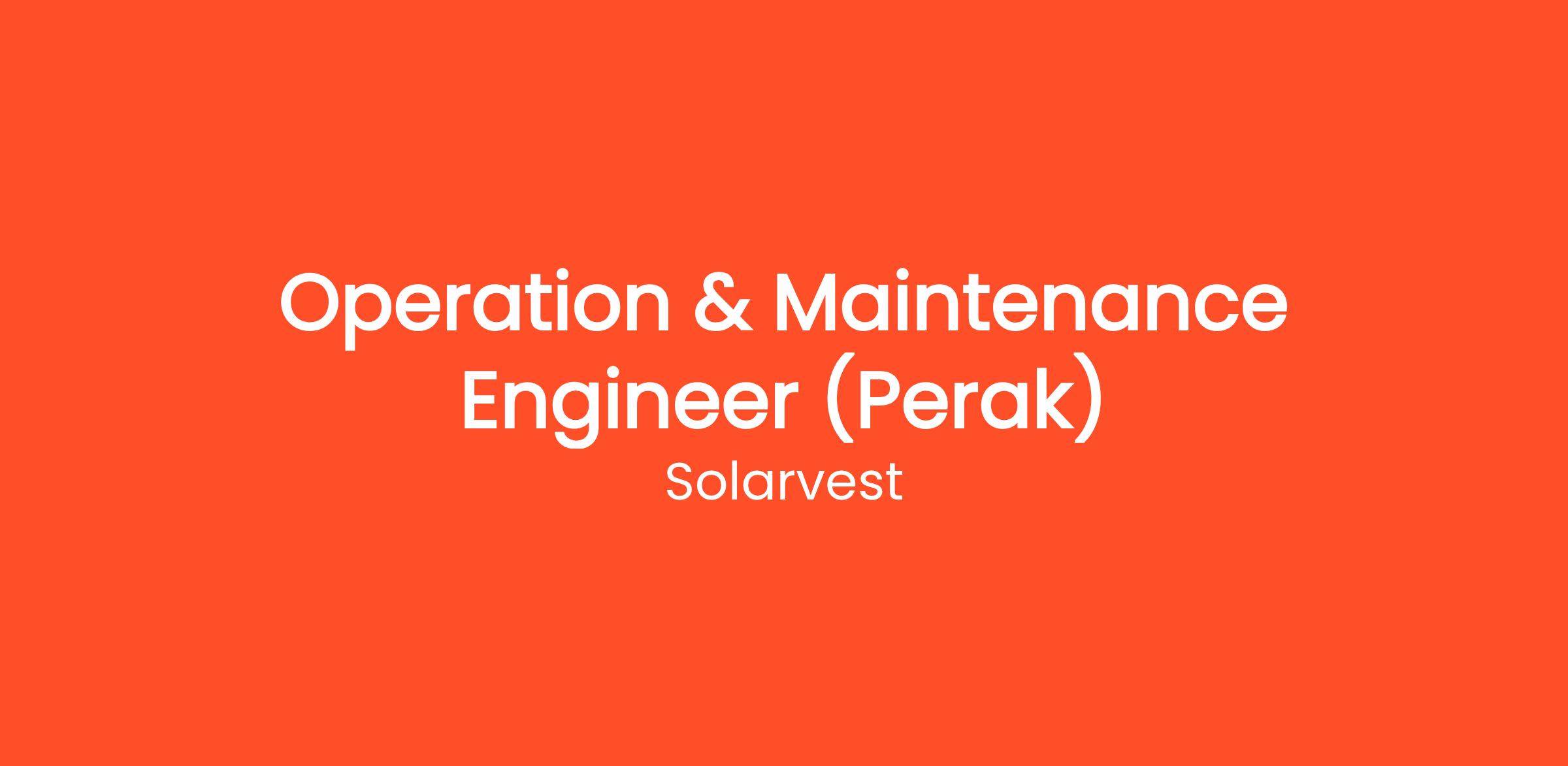 Operation & Maintenance Engineer (Perak)