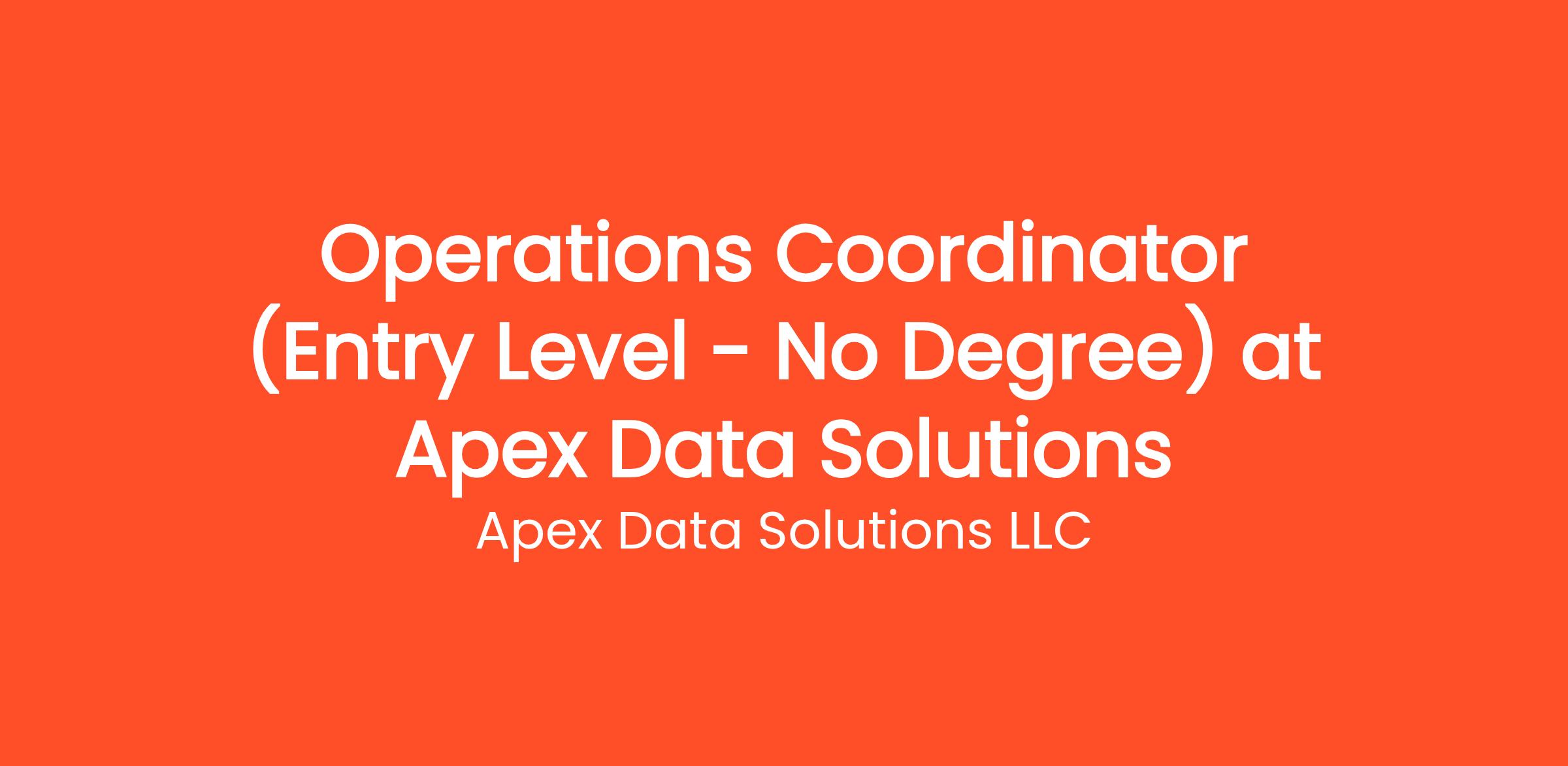 Are you highly organized and looking for the perfect entry-level opportunity? Apex Data Solutions LLC is currently seeking a Operations Coordinator (Entry Level - No Degree) to join our rapidly growing remote team. If you've been searching for remote jobs no degree or remote jobs hiring, this is the exact role you've been looking for. No degree required and no prior experience is necessary—we provide comprehensive training to all new hires! You will be responsible for critical daily operations, managing secure platforms, and contributing to our vibrant digital culture.