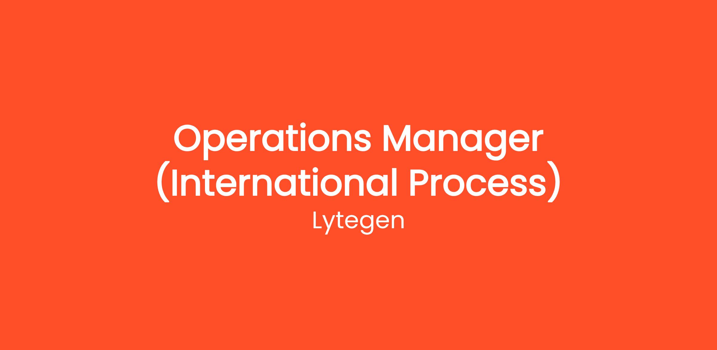 About the Role : Operations Manager (International Process)