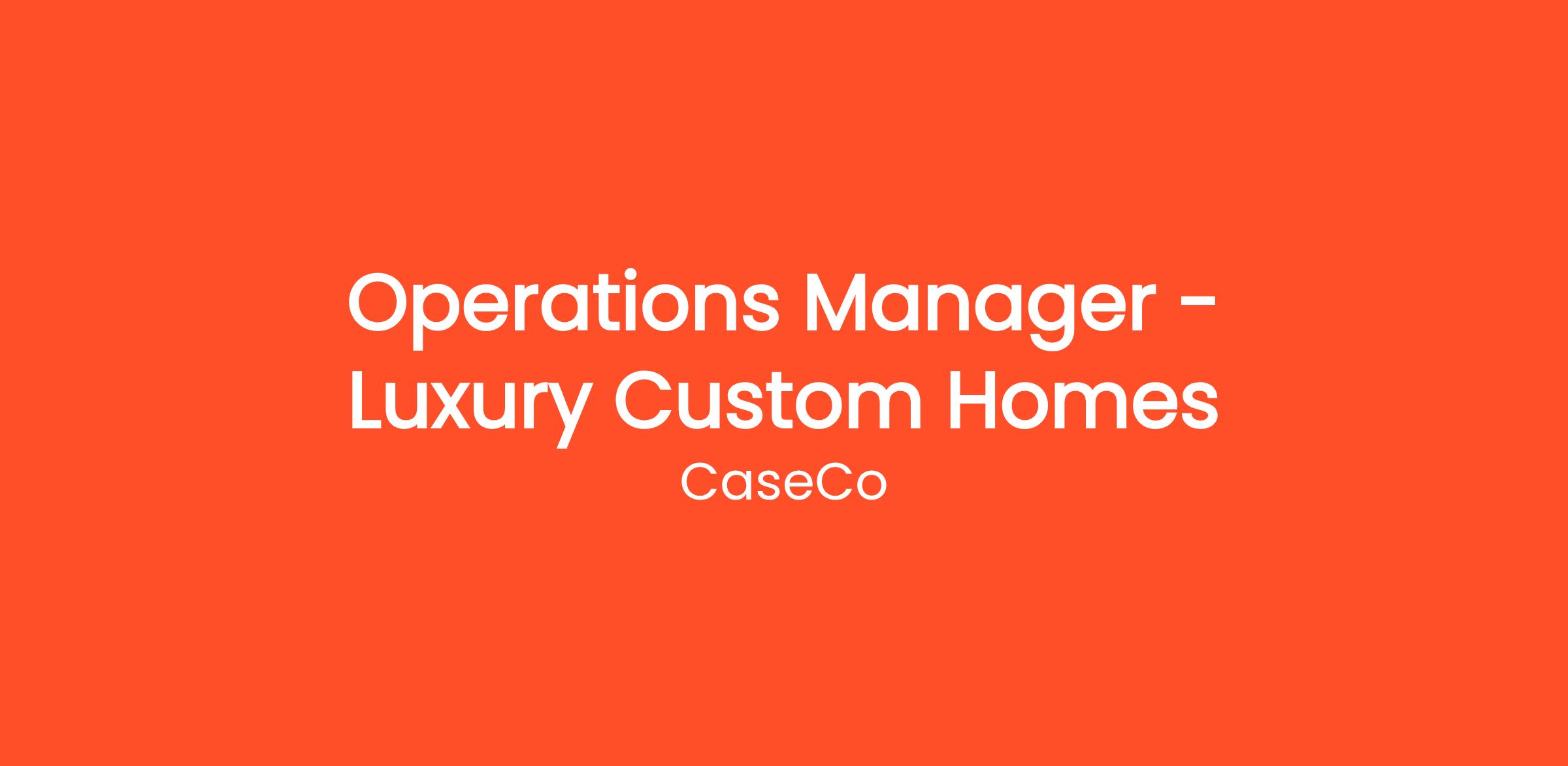 We are seeking an experienced Operations Manager to oversee and elevate the overall coordination of CaseCo Homes’ ultra-luxury residential projects. This role is responsible for improving project performance, productivity, efficiency, and profitability through the implementation of best-in-class systems, processes, and strategies.