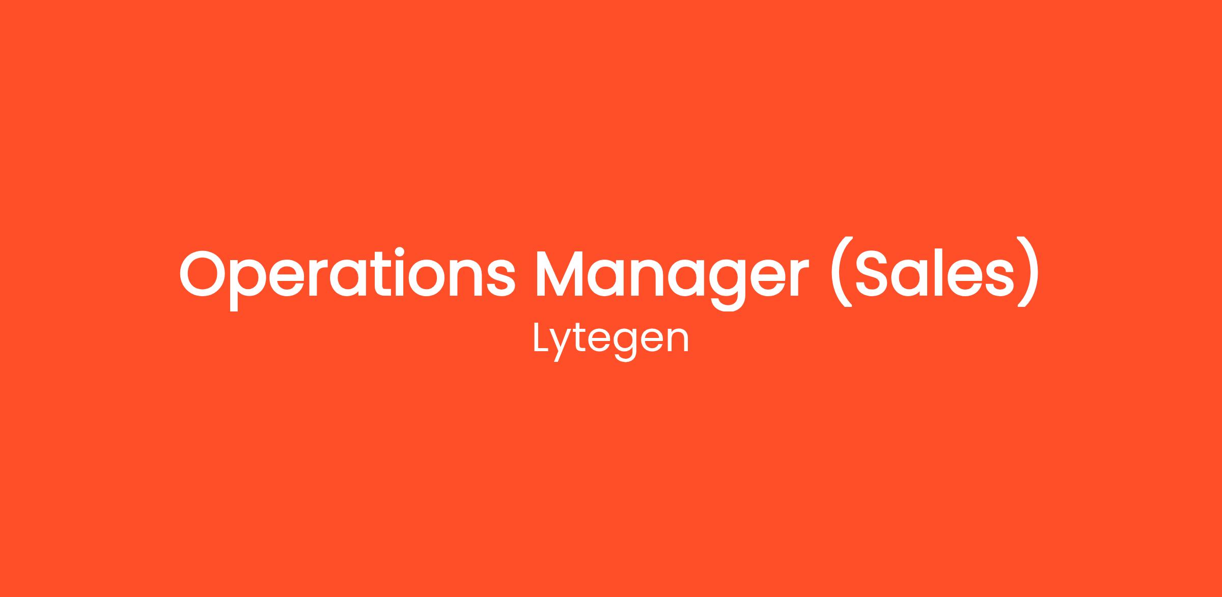 About the Role : Operations Manager(Sales)