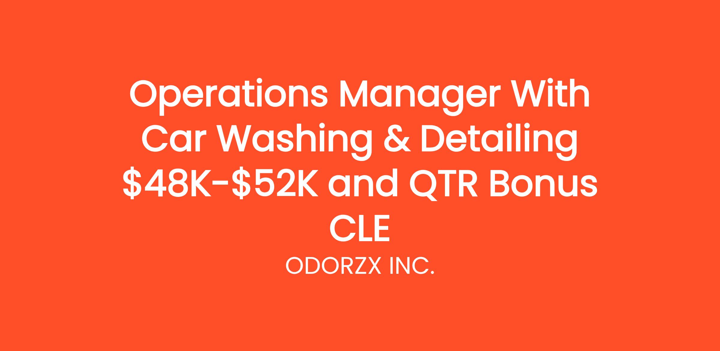 Operations Manager With Car Washing & Detailing $48K-$52K and QTR Bonus CLE