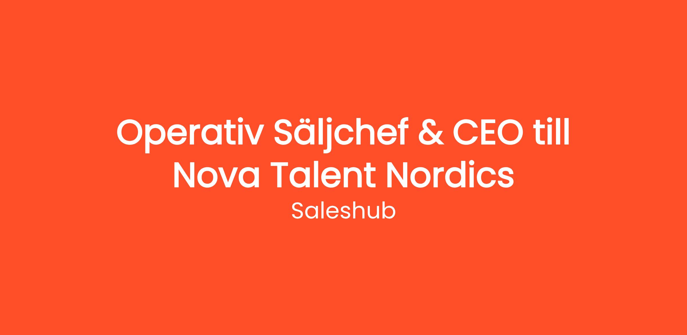 I denna rekrytering samarbetar Nova Talent Nordics med rekryteringsföretaget Saleshub. Har du frågor eller funderingar kring tjänsten är du välkommen att kontakta ansvarig rekryterare på alexander.gohari@saleshub.se