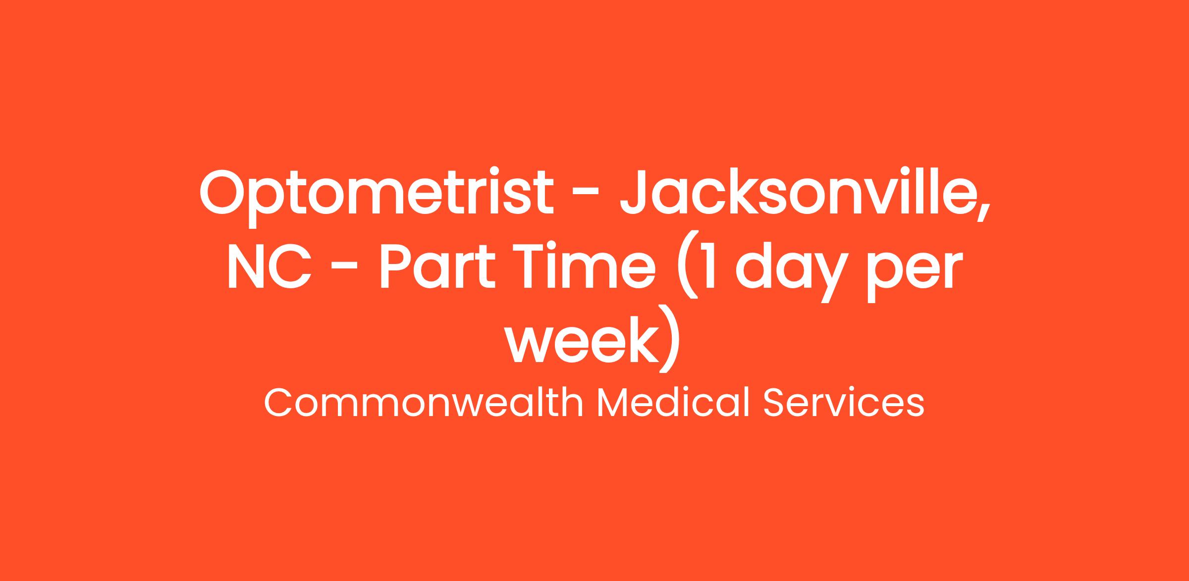 Exciting Opportunity for Optometrist in Jacksonville, NC for Part-time positions (1 day per week)