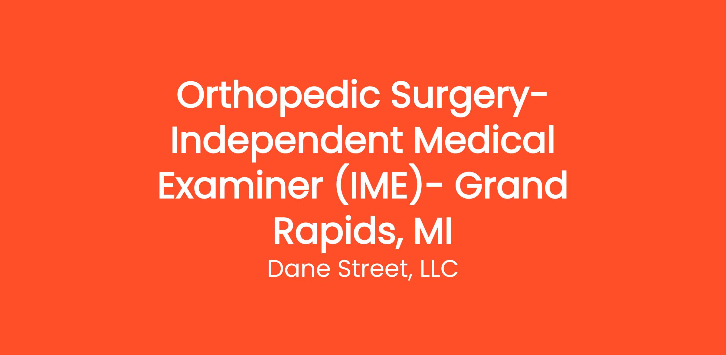 The ideal candidates will hold a MI license and be Board Certified in Orthopedic Surgery, with experience in completing Independent Medical Exams. Independent Medical Exam must be completed within 50 miles of Grand Rapids, MI.