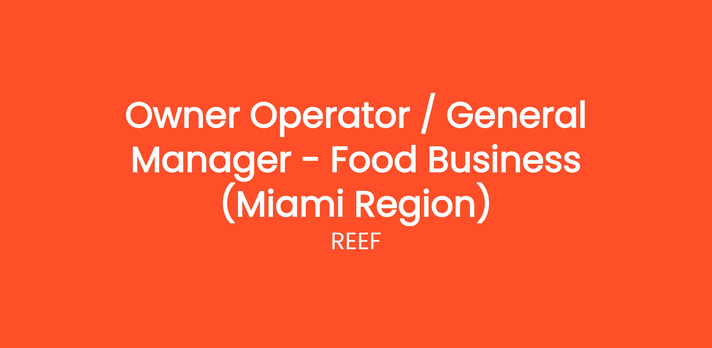 Owner Operator / General Manager - Food Business (Miami Region)