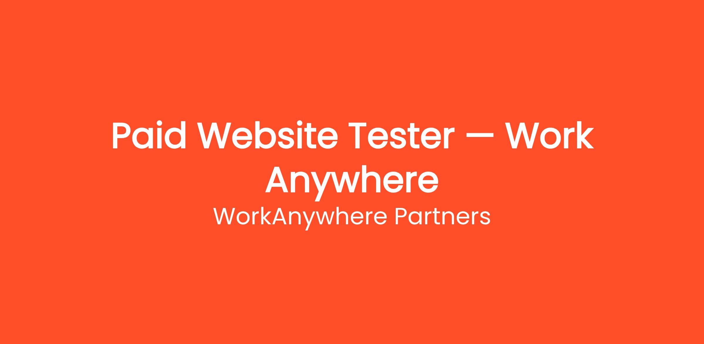 Thousands of people are already working from home as a Paid Website Tester — Work Anywhere with WorkAnywhere Partners. Get paid to test websites and mobile apps from home and give your honest feedback. No tech experience required. This work-from-home opportunity requires no commute, no degree, and no special prior experience. Get started on your own terms — choose your own hours and work as many or as few hours per week as you need. Payouts are processed regularly with multiple withdrawal options so you always get paid on time.