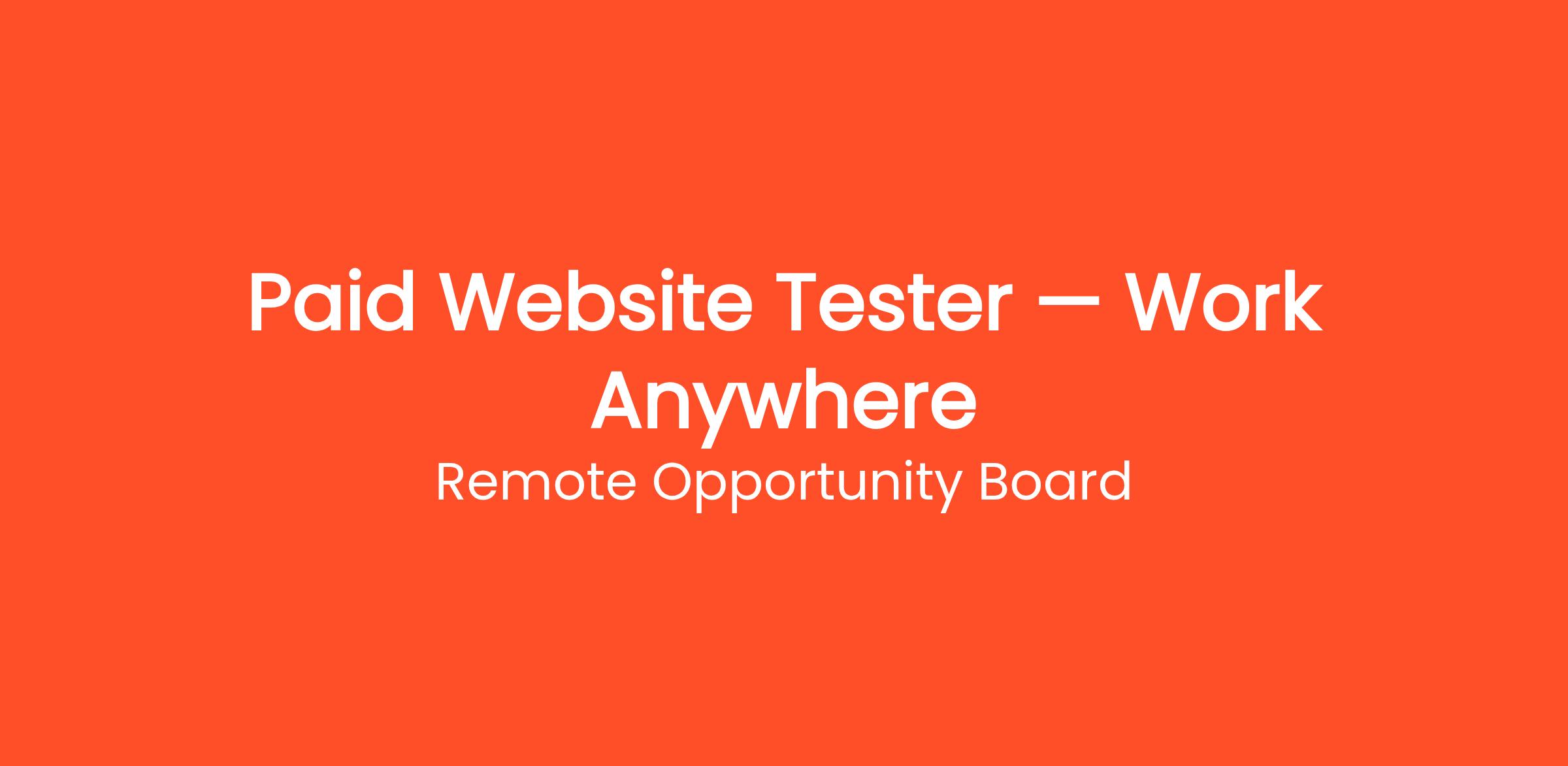Thousands of people are already working from home as a Paid Website Tester — Work Anywhere with Remote Opportunity Board. Get paid to test websites and mobile apps from home and give your honest feedback. No tech experience required. This work-from-home opportunity requires no commute, no degree, and no special prior experience. Get started on your own terms — choose your own hours and work as many or as few hours per week as you need. Payouts are processed regularly with multiple withdrawal options so you always get paid on time.