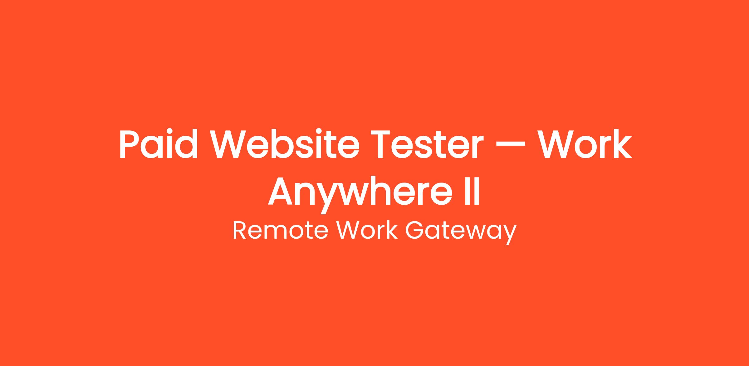 Are you looking for a flexible, legitimate way to earn money online? Join Remote Work Gateway as a Paid Website Tester — Work Anywhere II. Get paid to test websites and mobile apps from home and give your honest feedback. No tech experience required. This role is 100% remote and beginner-friendly. We welcome candidates from all backgrounds — stay-at-home parents, students, retirees, and career changers are all encouraged to apply. You control your own schedule and can start earning quickly after a simple onboarding process.