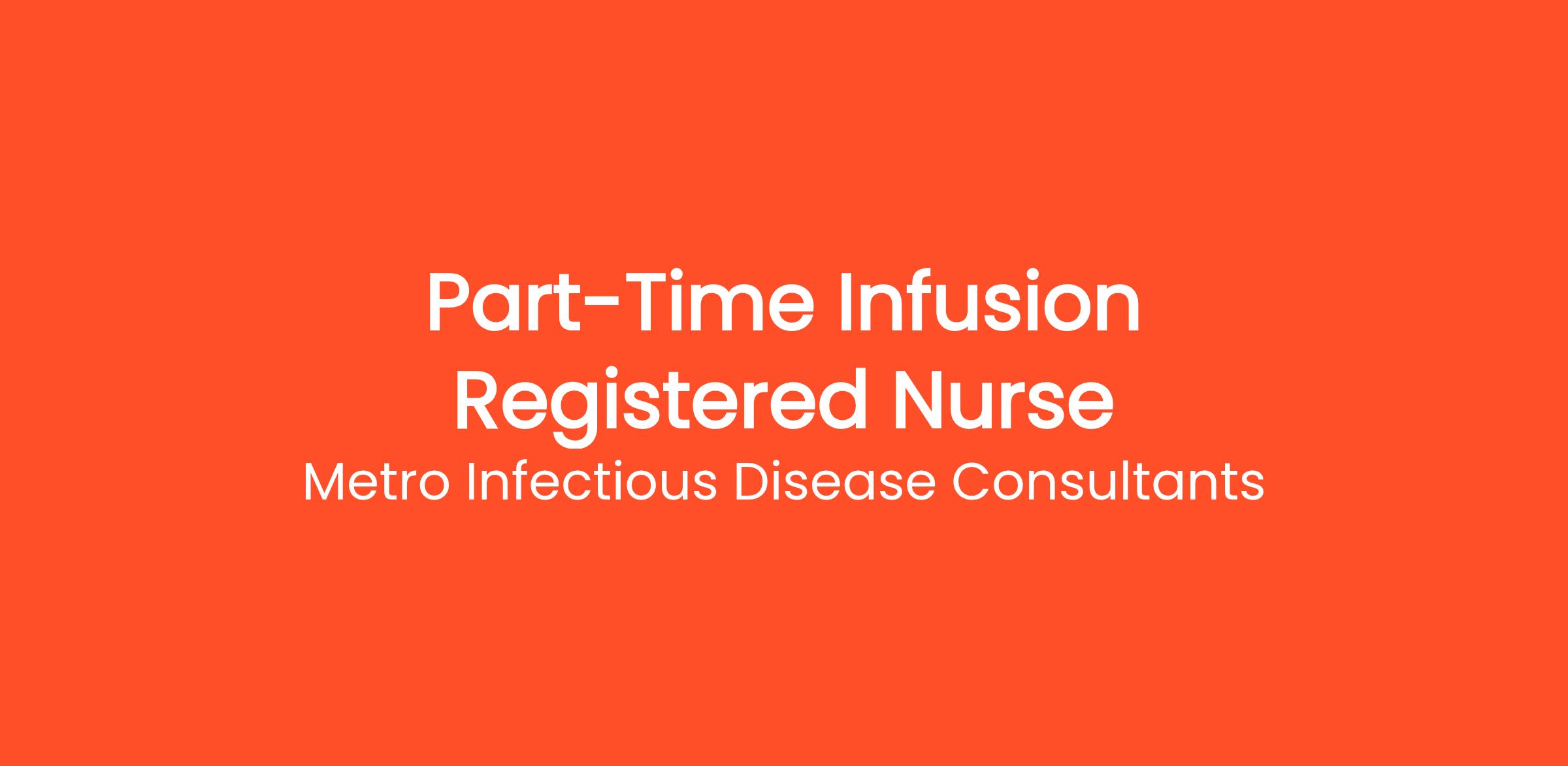 Metro Infectious Disease Consultants is seeking a part-time Registered Nurse for supervision and administration of infusion therapy at the clinic located in Decatur, GA.