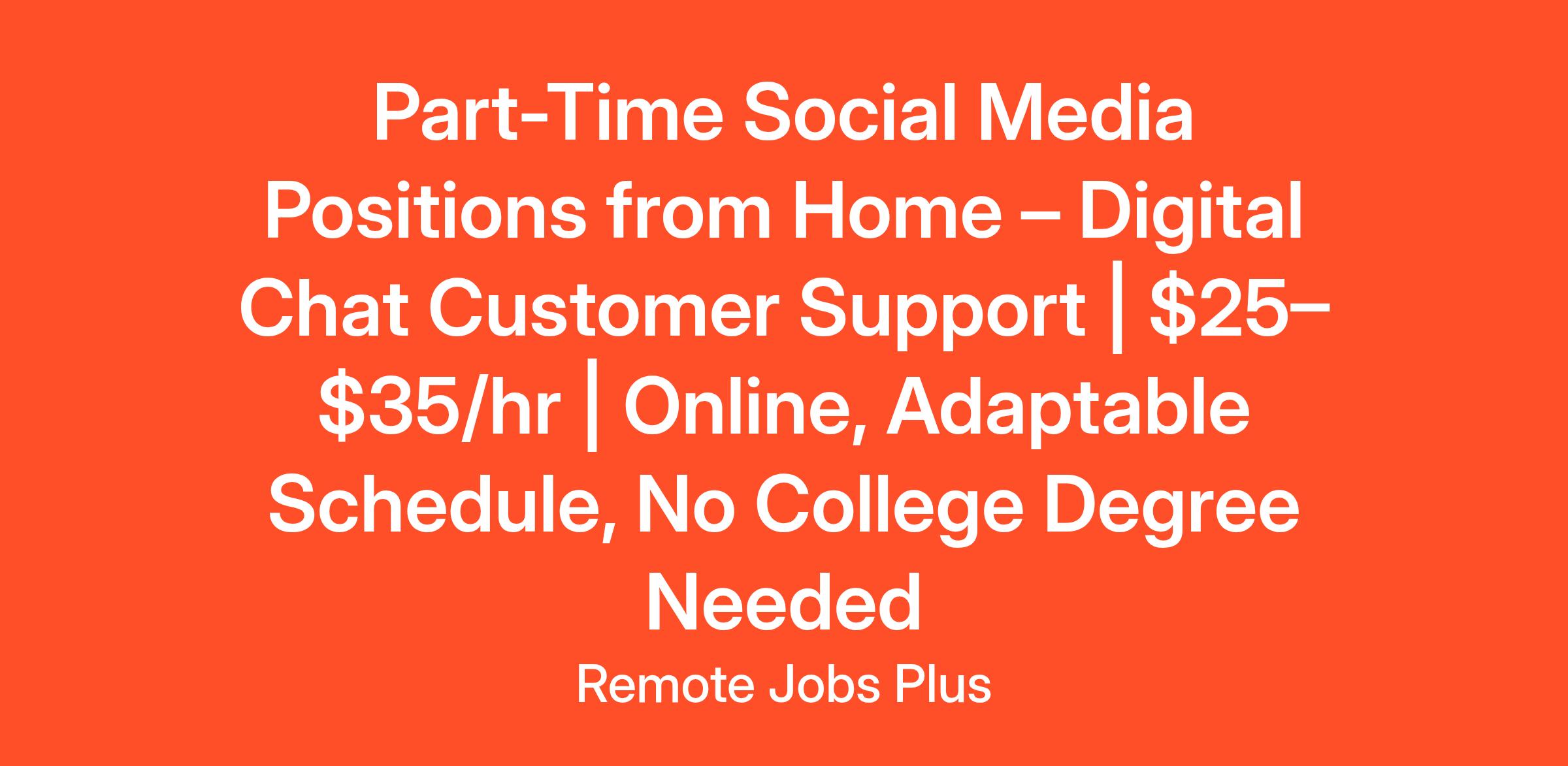 If you're ready to start a flexible, high-paying part-time social media job from home, click the Apply Now button to begin. Training begins weekly and spots are limited—join today and start earning $25–$35/hr helping customers through chat.