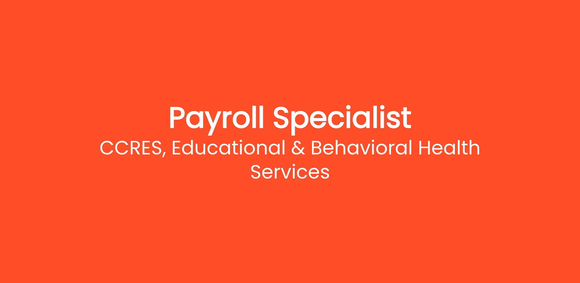 *The Payroll Specialist is an independent contract (1099) position. No benefits are associated with this role.