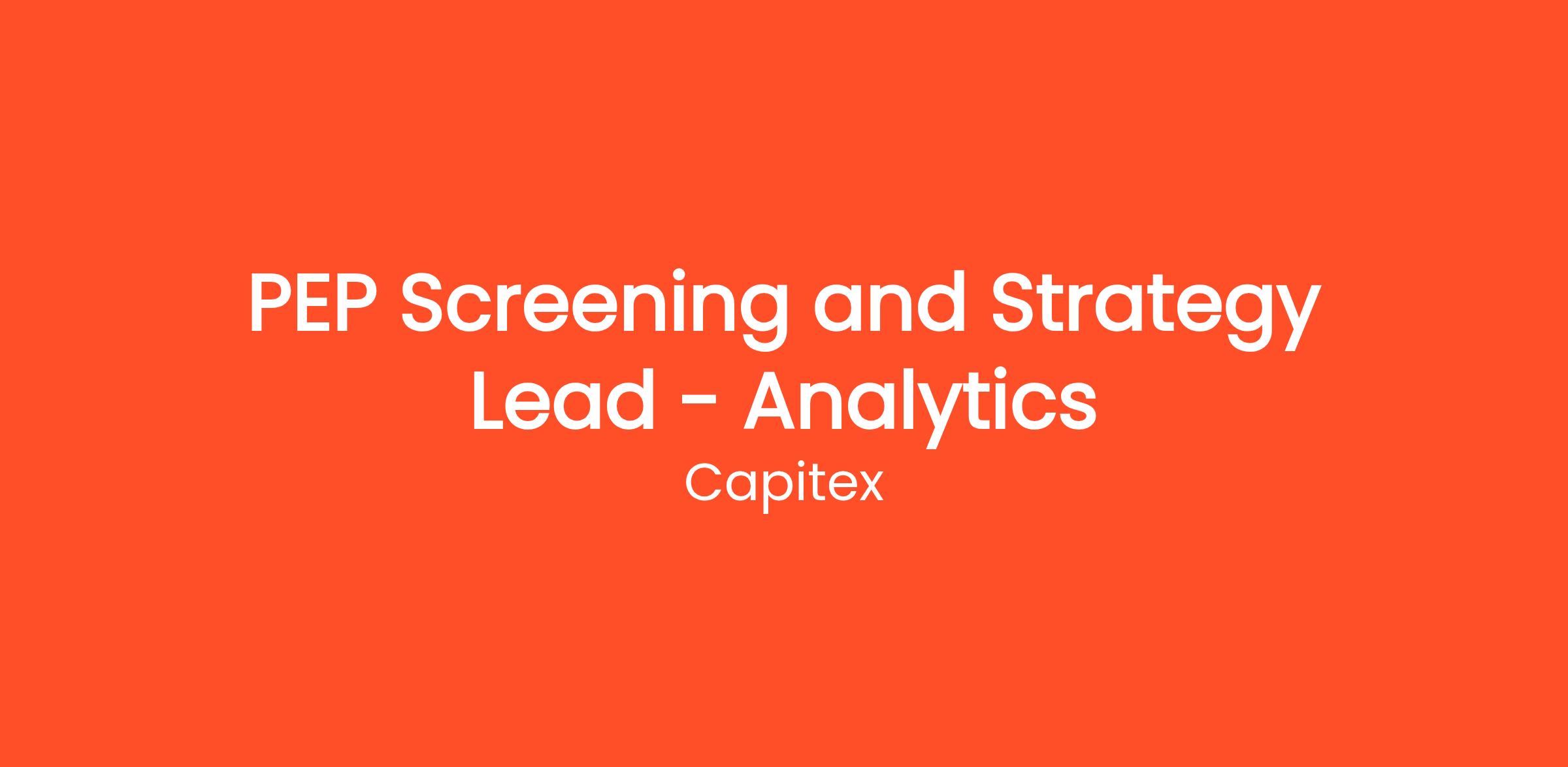 PEP Screening and Strategy Lead