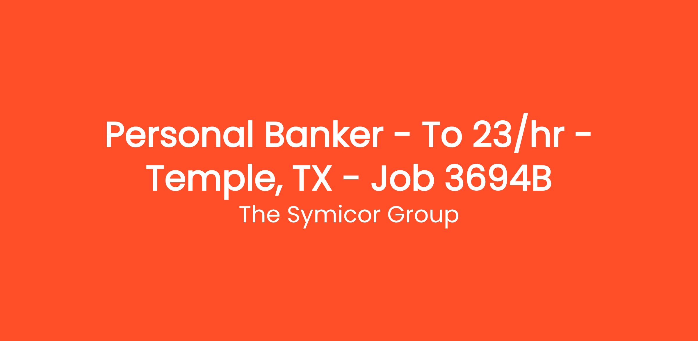 Personal Banker – To $23/hr – Temple, TX – Job # 3694B