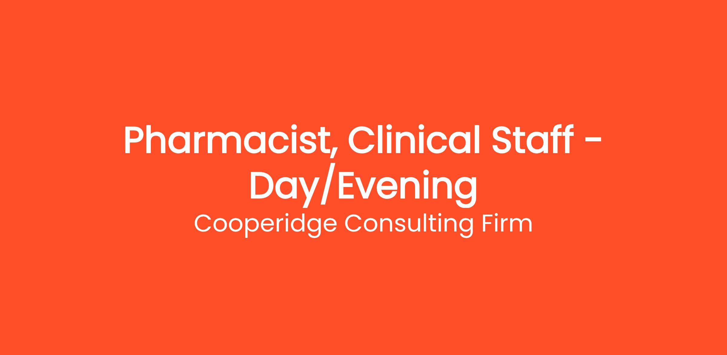 Cooperidge Consulting Firm is seeking a Pharmacist, Clinical Staff for a top healthcare client in Roanoke, VA.