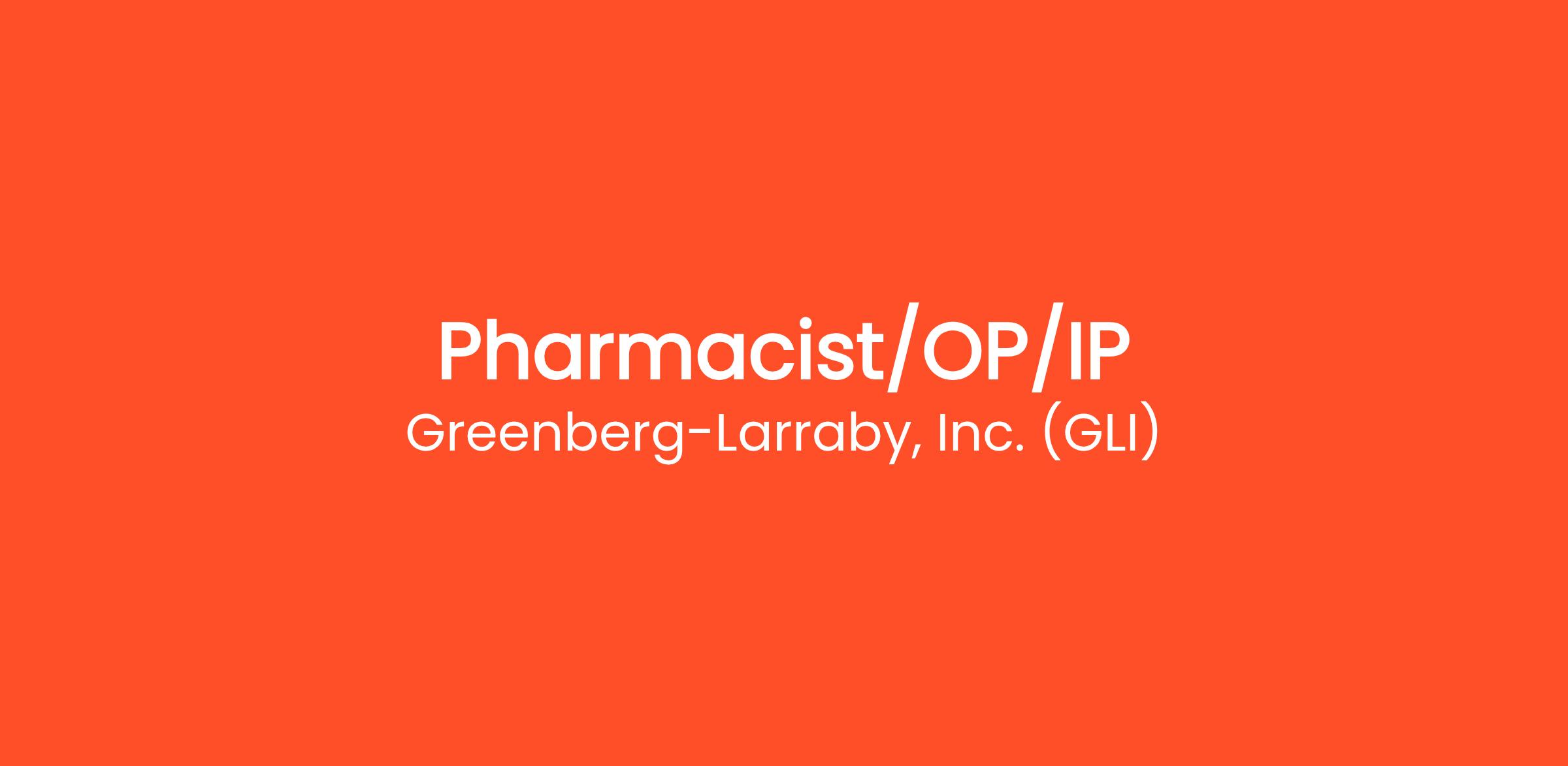 Greenberg-Larraby, Inc. (GLI) is seeking a dedicated and knowledgeable Pharmacist to join our team, focusing on both outpatient (OP) and inpatient (IP) pharmacy services. In this role, you will be responsible for ensuring the safe and effective use of medications across various patient populations.