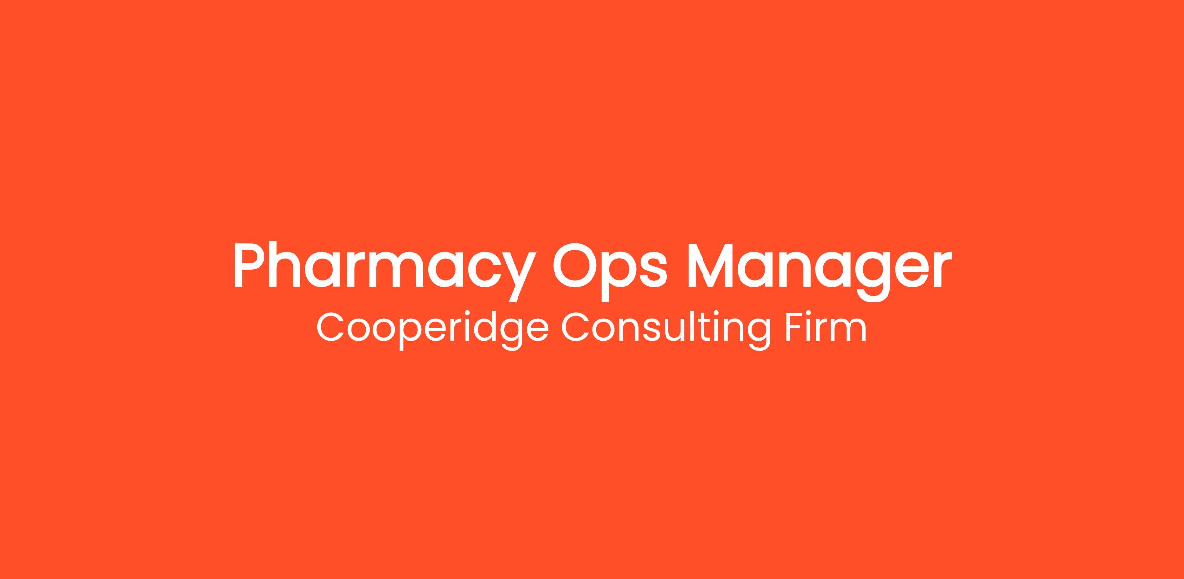 Cooperidge Consulting Firm is seeking a Pharmacy Operations Manager and Pharmacist-in-Charge (PIC) for a top healthcare client in Virginia.