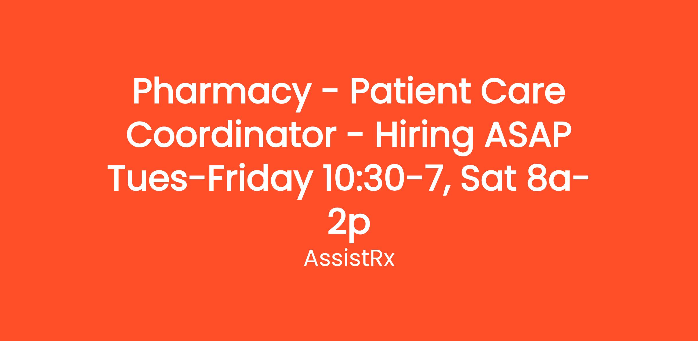 Pharmacy - Patient Care Coordinator - Hiring ASAP Tues-Friday 10:30-7, Sat 8a-2p