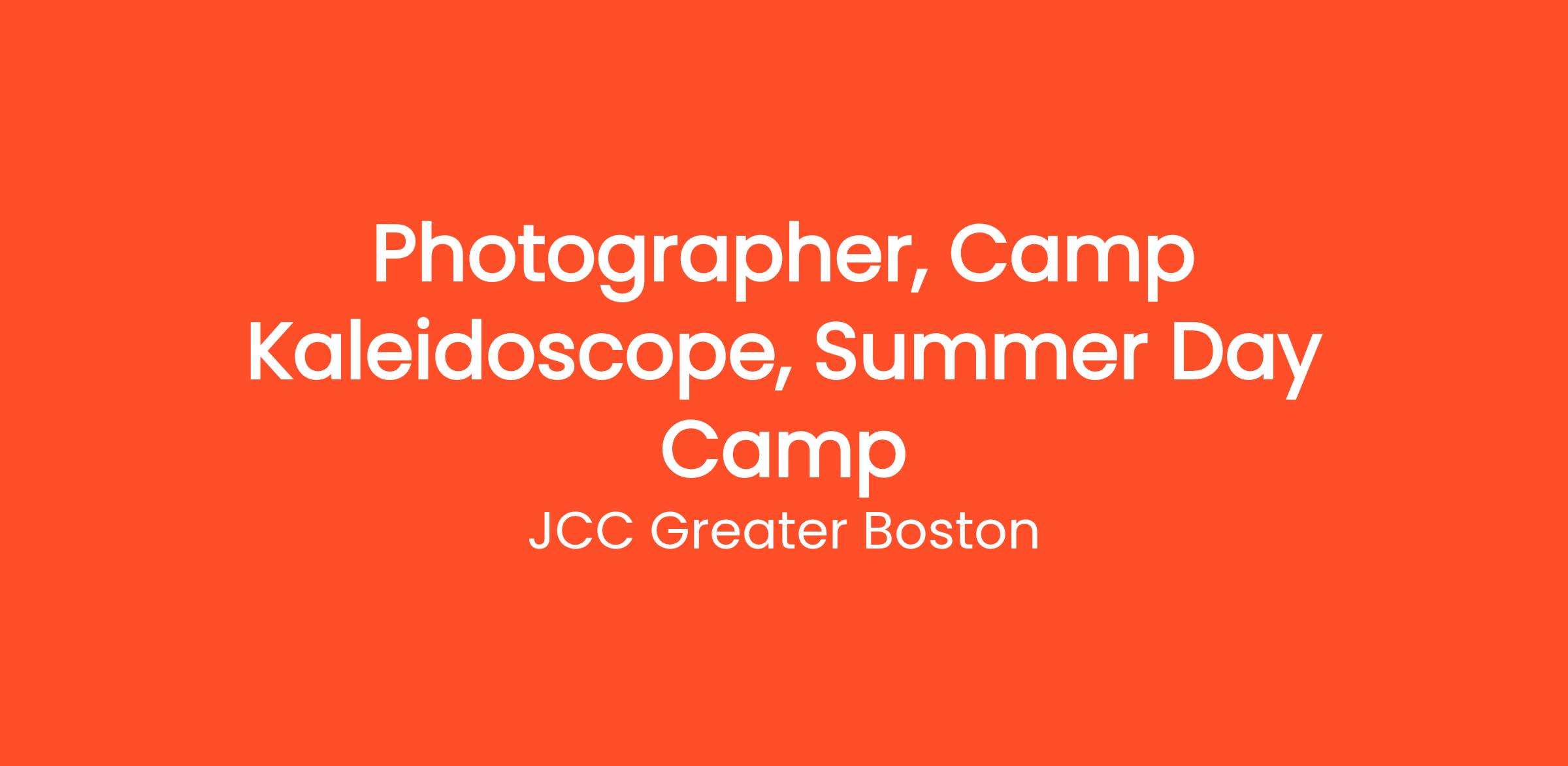 Capture the magic and fun of the summer camp experience in photos! Camp Kaleidoscope, the JCC summer day camp in Newton, draws creative campers interested in the arts, science and the outdoors. Camp Counselors and activity specialists guide campers in drama, art, science, sports, swimming and much more as they develop and build self-confidence. The energy of the camp is lively, playful and warm, as both campers and staff develop lifelong friendships. We are looking for a photographer to capture all the magic and fun that happens at camp and package it for our marketing materials and newsletters.
