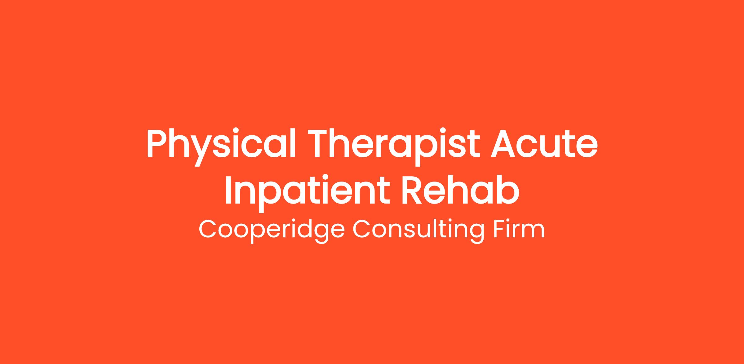 Cooperidge Consulting Firm is seeking a Physical Therapist (PT) Acute Inpatient Rehab for a top Healthcare client.