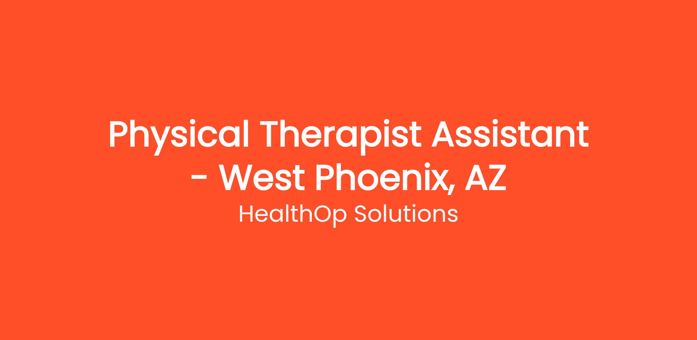We are seeking a dedicated Physical Therapist Assistant (PTA) to join our outpatient physical therapy team in West Phoenix. This is a great opportunity for a motivated PTA who values collaboration, high-quality patient care, and professional growth. You will work closely with licensed Physical Therapists to implement treatment plans, support patients in reaching their rehabilitation goals, and help maintain a safe and supportive clinical environment.
