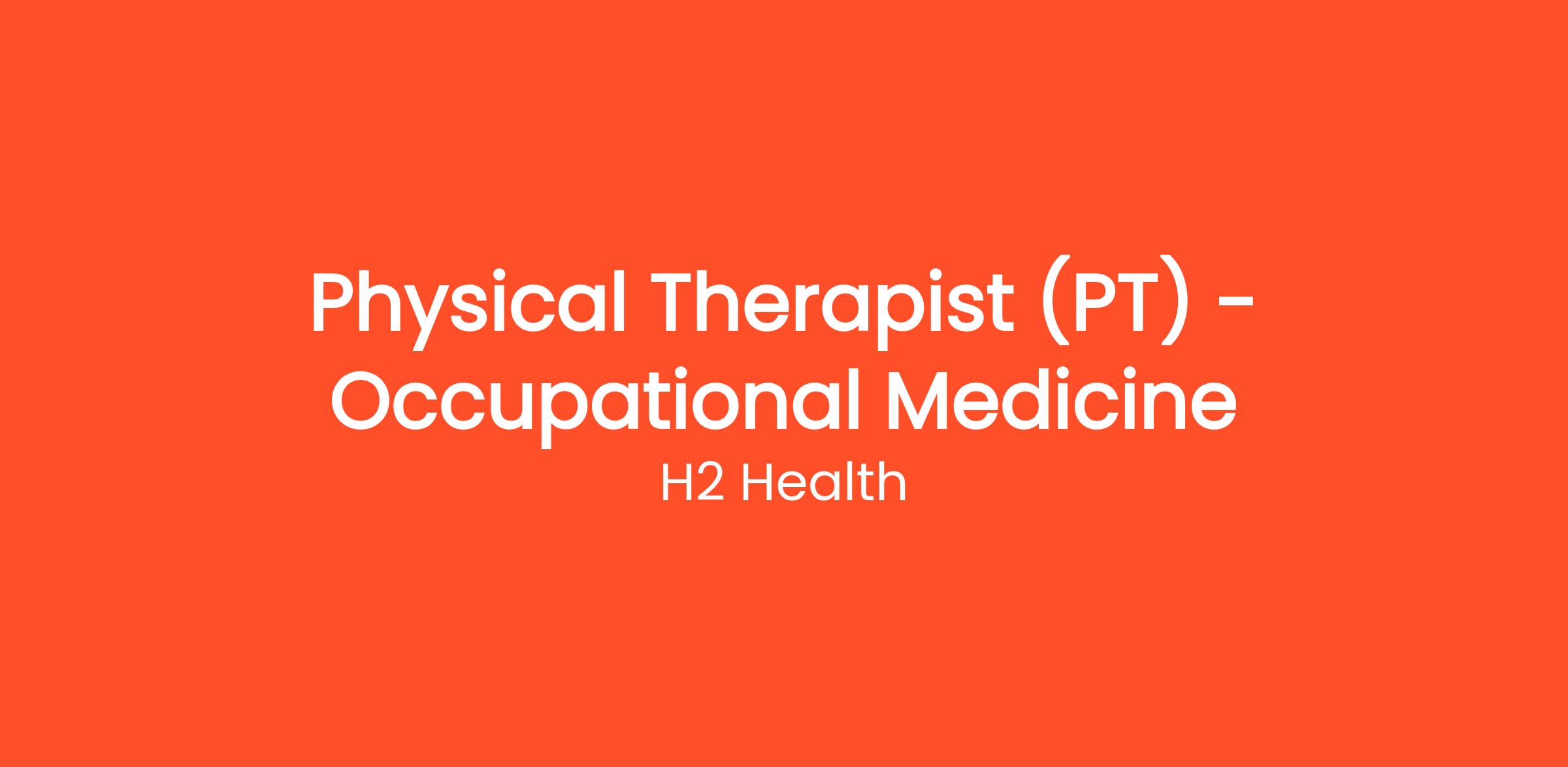 Physical Therapist (PT) | Full-time | Occupational Medicine |