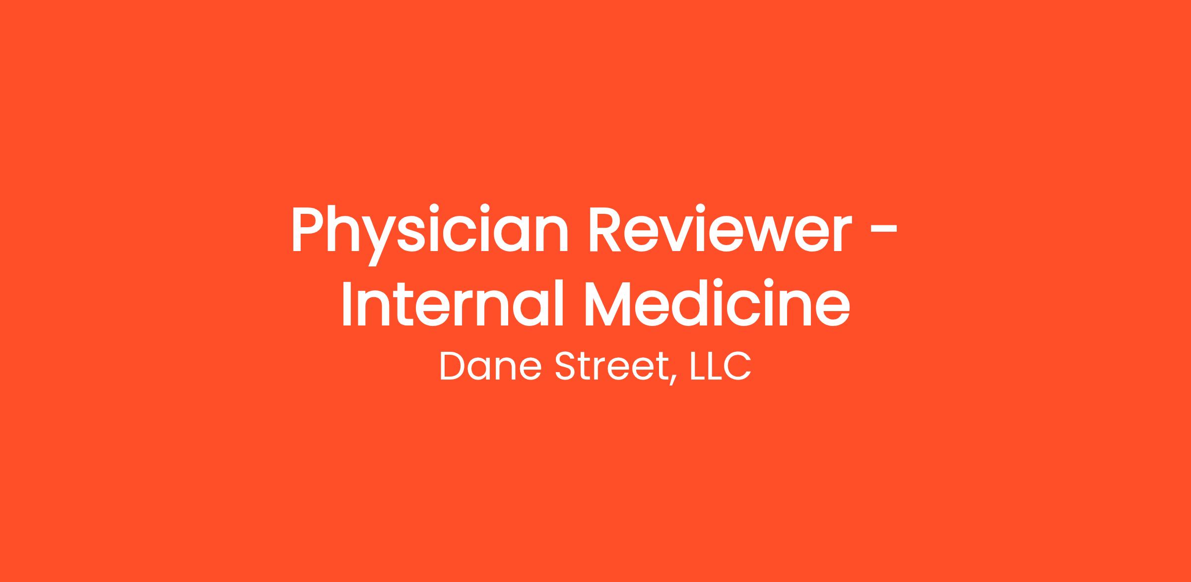 Dane Street, a certified "Great Place to Work'' company, is searching for Board Certified Internal Medicine physicians to conduct Independent Medical Exams (IME) and Peer Reviews. This opportunity allows you to customize your schedule and caseload within a standard Monday - Friday work week while maintaining client-mandated turnaround times. We will reach out when we have an IME or Peer Review in your jurisdiction/area to schedule or assign a case. Our reviewers are compensated on a per-case basis as a 1099 independent contractor.