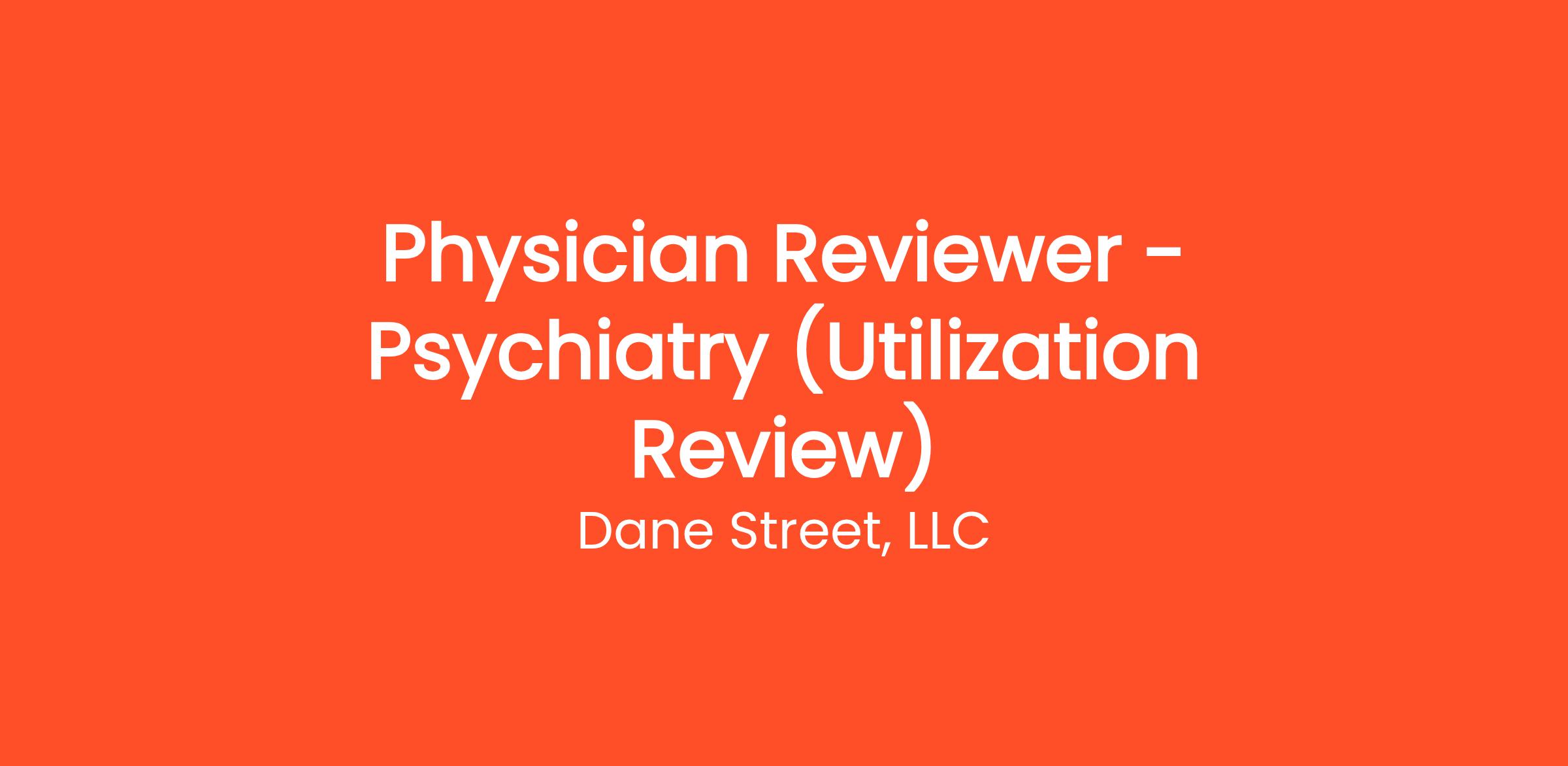 Dane Street, a nationally recognized Independent Review Organization (IRO), is expanding its panel of Physician Reviewers. We are currently seeking Board-Certified Psychiatrist with an active New York medical license and Workers’ Compensation Board Certification to conduct Utilization Reviews.