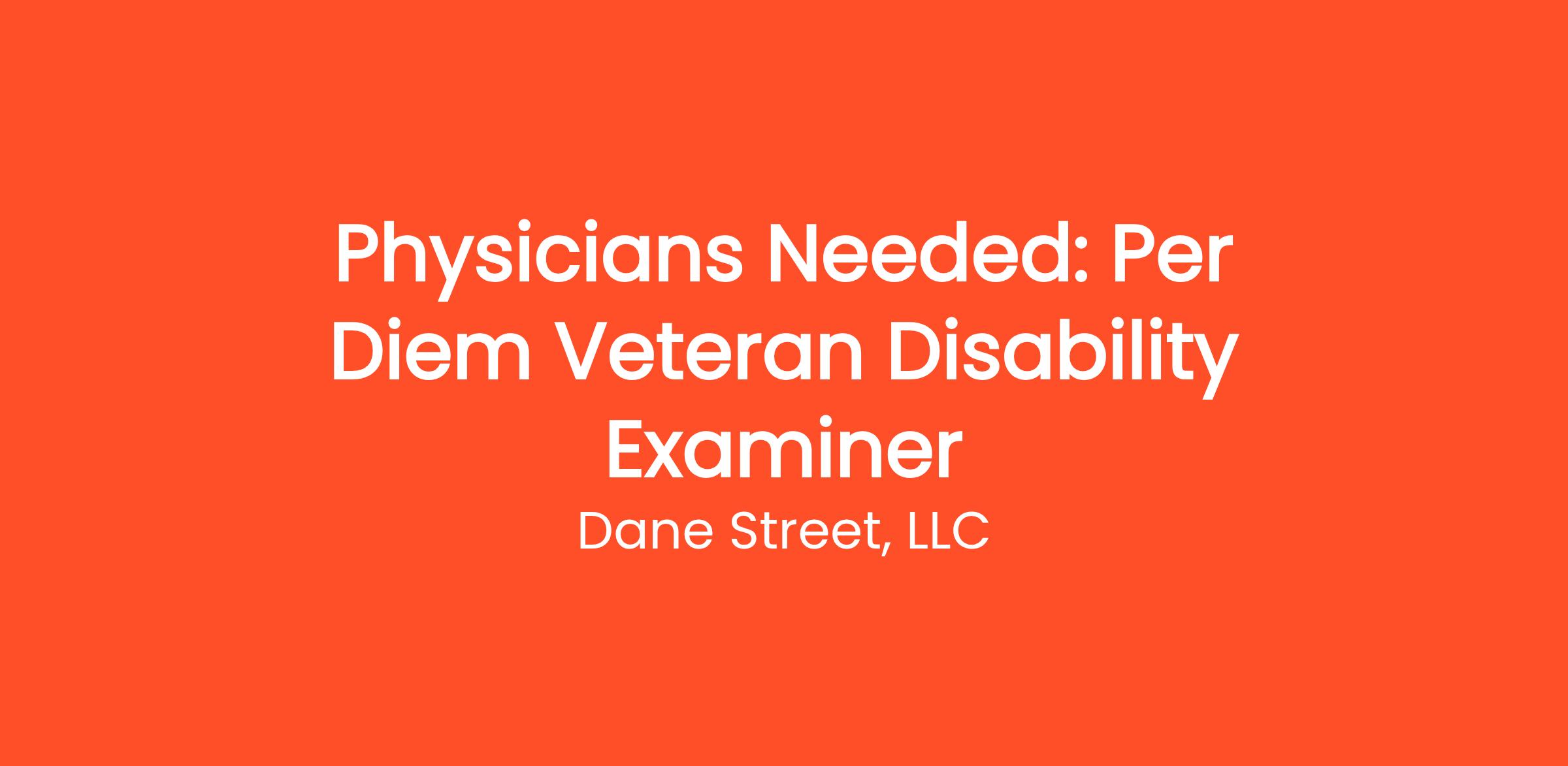Dane Street is hiring licensed Internal Medicine Physicians to conduct per diem Medical Disability Examinations for U.S. Veterans.