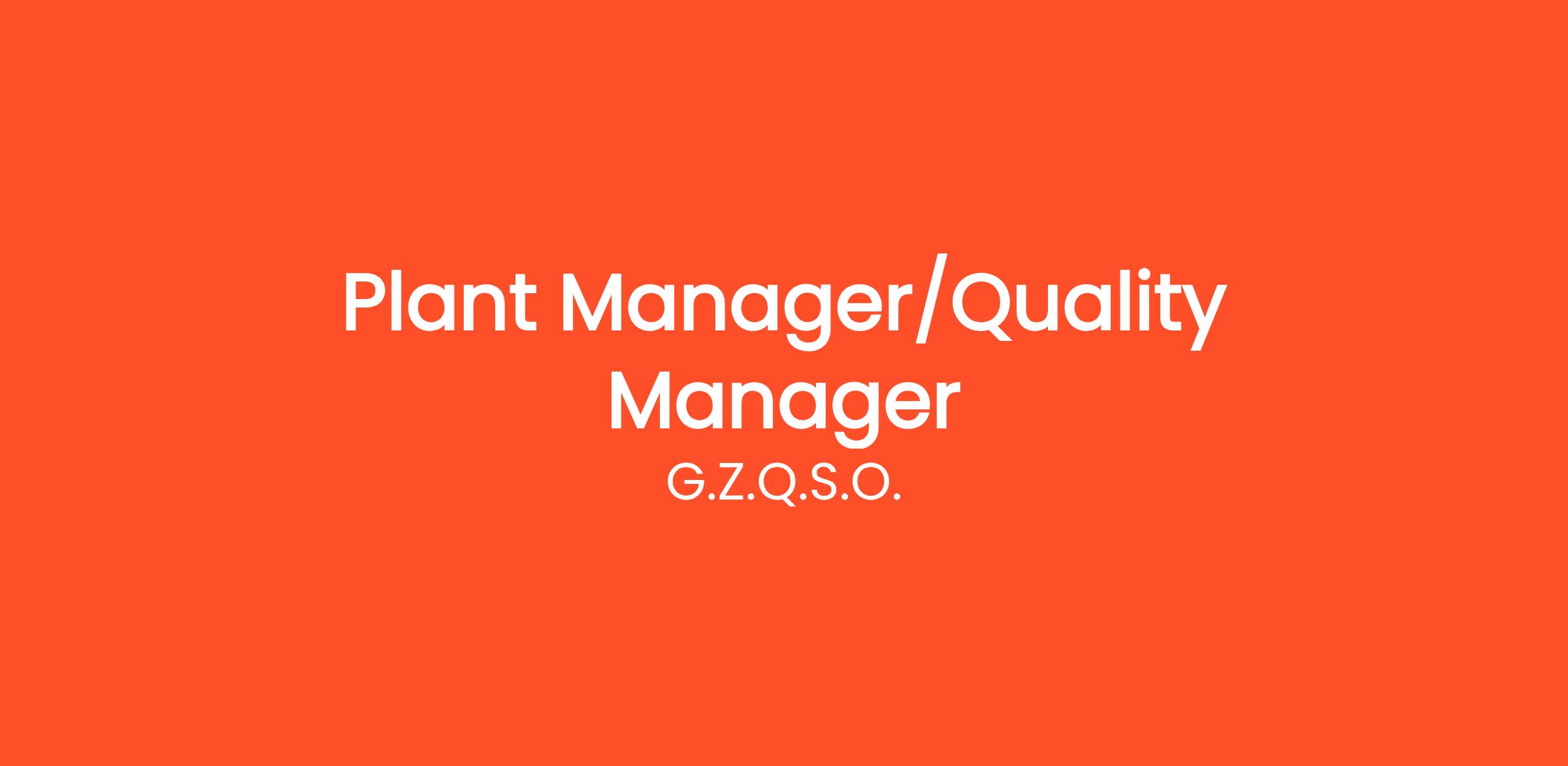 Job Title: Plant Manager/Quality (Small plant)