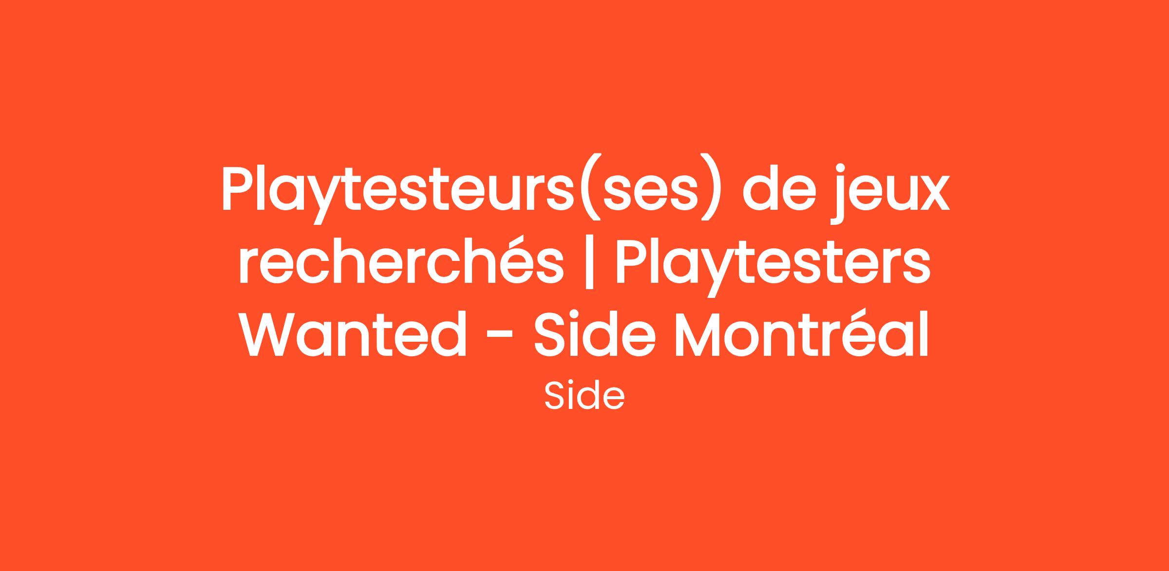 Side Montréal est présentement à la recherche de Playesteurs(ses) pour se joindre à nous pour essayer l'un des projets excitants de nos parternaires!