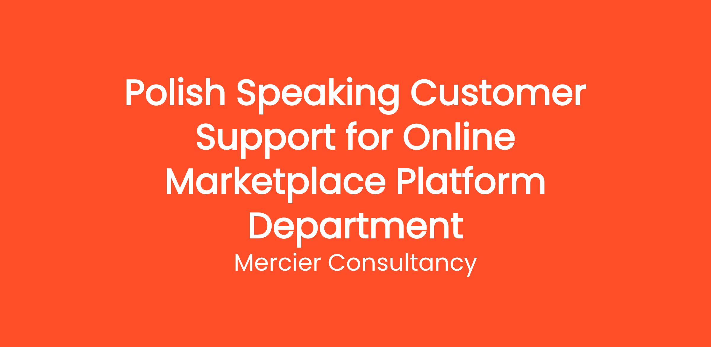 Mercier Consultancy is excited to announce an opening for a Polish Speaking Customer Support Representative in our Online Marketplace Platform Department! In this vital role, you will be the primary resource for our Polish-speaking clients as they navigate our online marketplace, ensuring they receive the assistance they need to optimize their experience.