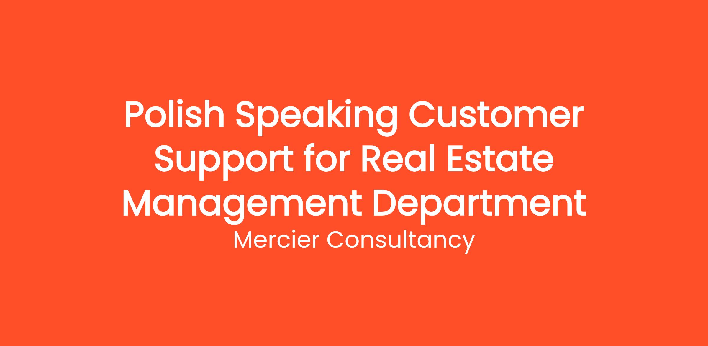 Mercier Consultancy is in search of a Polish Speaking Customer Support Representative for our Real Estate Management Department! In this essential role, you will be the first point of contact for our Polish-speaking clients, providing them with outstanding support and assistance regarding their real estate inquiries and services. Your language skills will be vital in fostering strong relationships and ensuring client satisfaction.