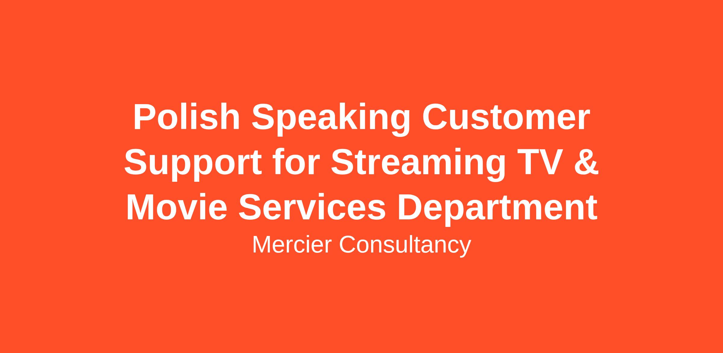Mercier Consultancy is seeking a dedicated Polish Speaking Customer Support Representative for our Streaming TV & Movie Services Department! In this role, you will provide essential support to our Polish-speaking clients, assisting them with inquiries related to our streaming services and enhancing their viewing experience. Your proficiency in Polish will be vital in delivering exceptional customer service.