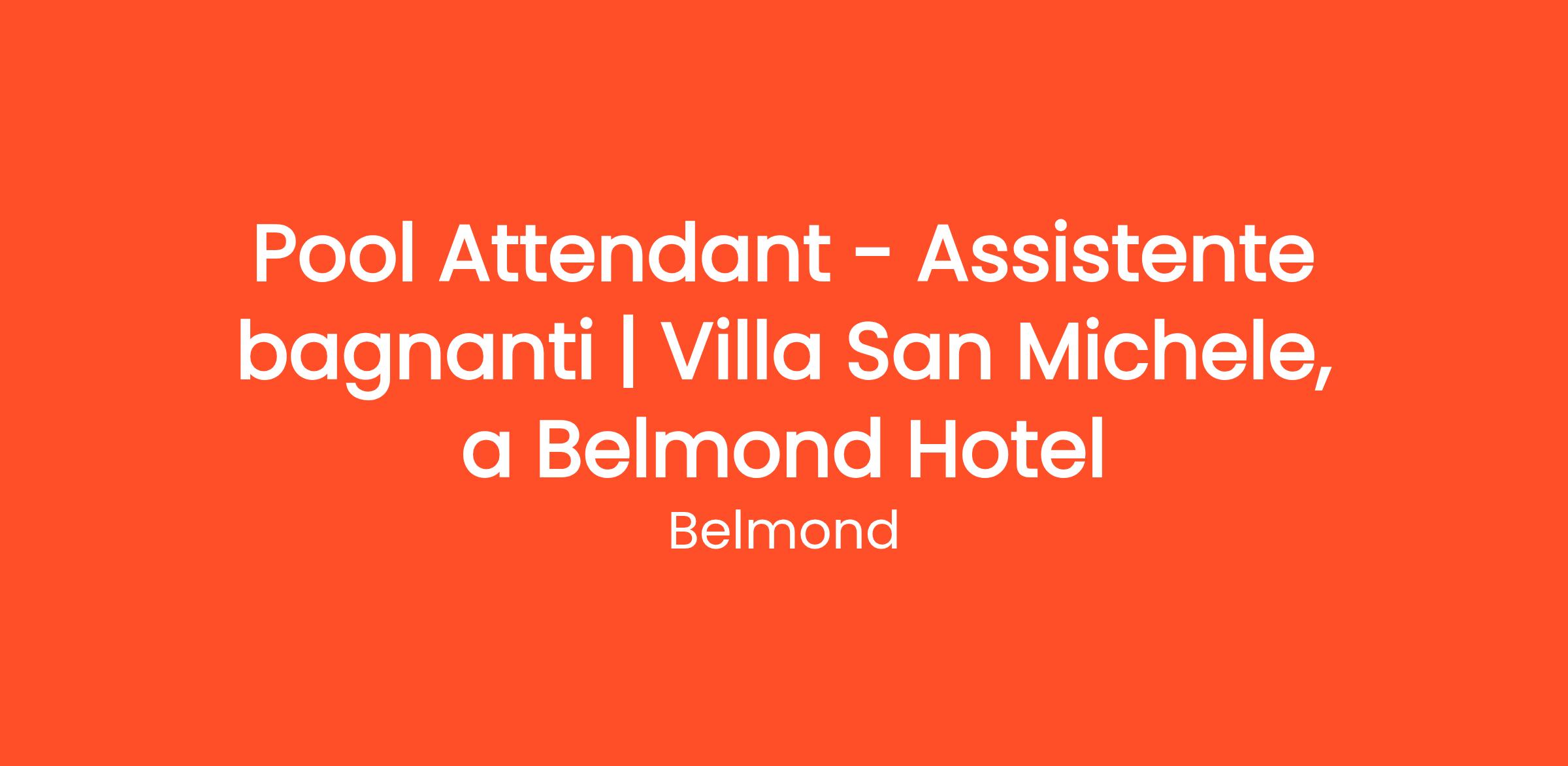 Villa San Michele, a Belmond hotel nestled in the Fiesole hills, overlooking Florence, is seeking a Pool Attendant to join its team. In this role, you will be a key player in ensuring the security of our guests and delivering extraordinary luxury experiences that reflects the unparalleled charm and sophistication of our property.