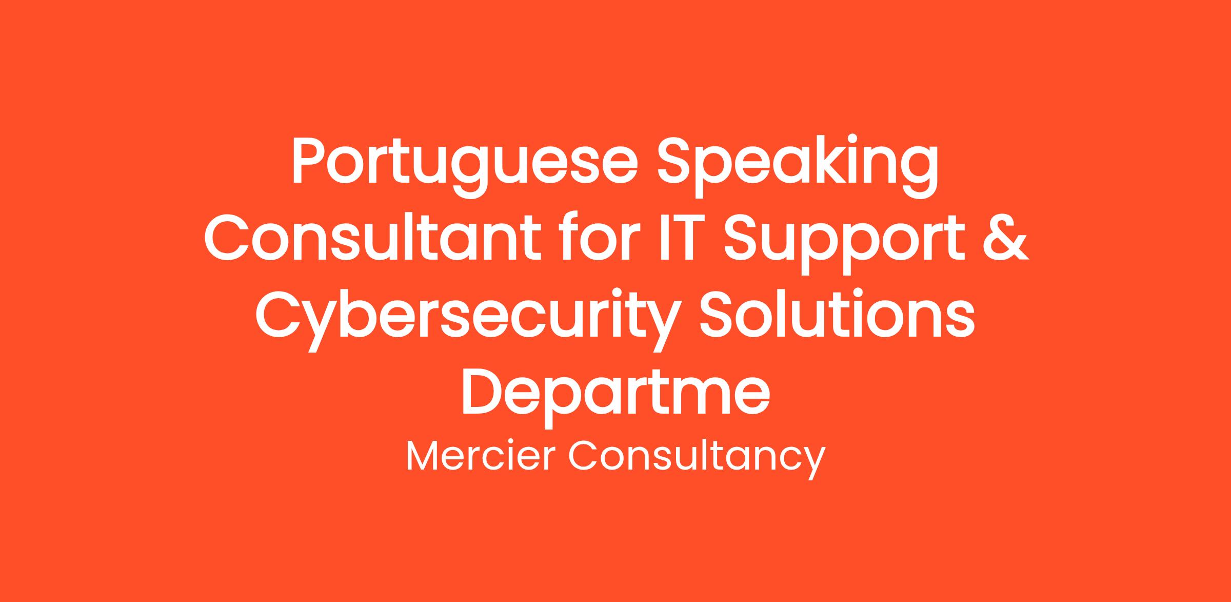 Mercier Consultancy is excited to announce an opening for a Portuguese Speaking Consultant within our IT Support & Cybersecurity Solutions Department for one of our clients. In this Entry Level key position, you will provide vital support to our Portuguese-speaking clients, helping them navigate their IT challenges and ensuring their systems are secure and efficient. Your role will be crucial in delivering customer satisfaction and enabling clients to leverage our cybersecurity solutions effectively.