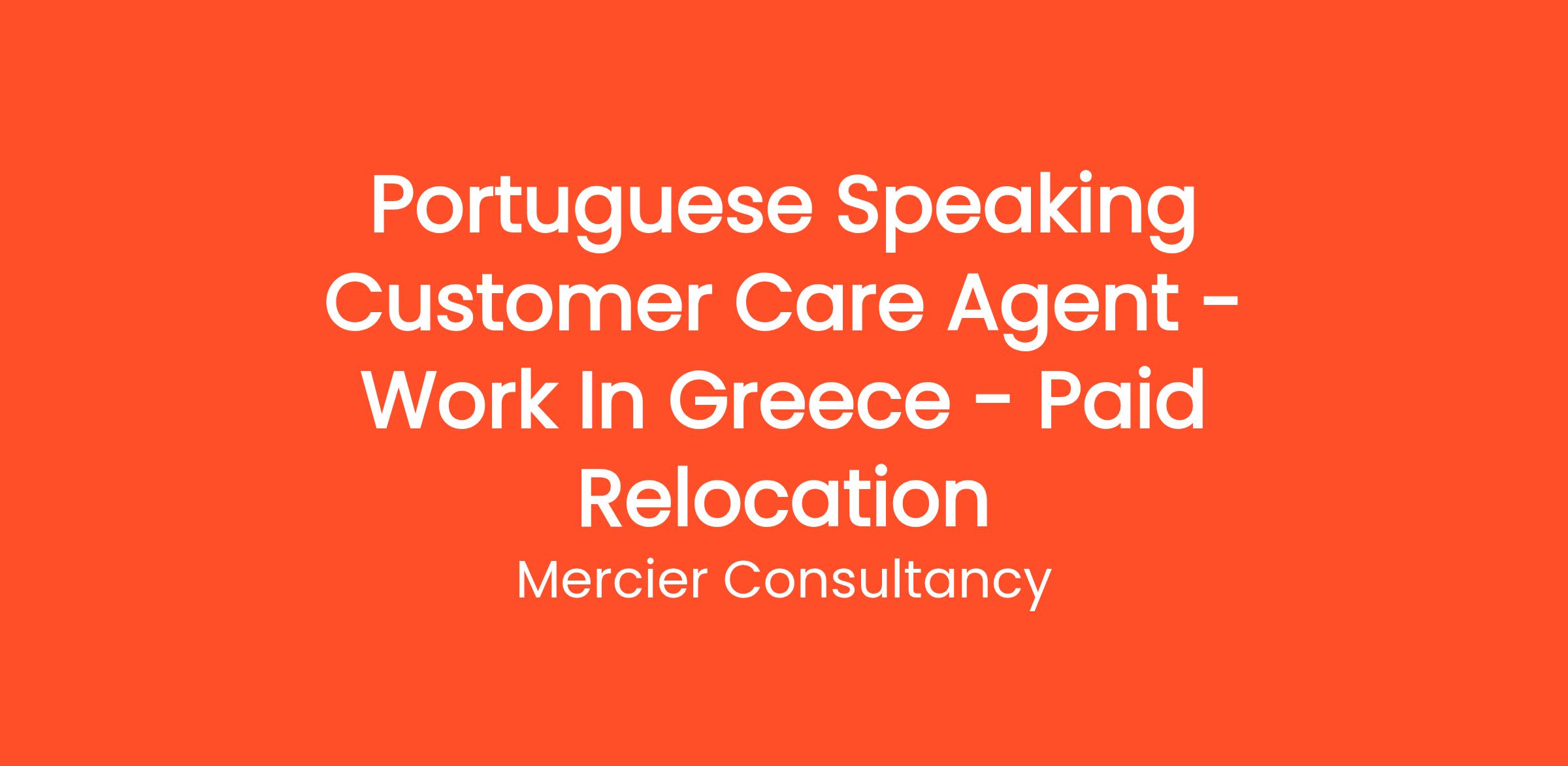 Mercier Consultancy is actively seeking a Portuguese Speaking Customer Care Agent to join our dedicated team! In this pivotal role, you will provide outstanding support to our Portuguese-speaking clients, ensuring that their inquiries are handled with professionalism and efficiency.