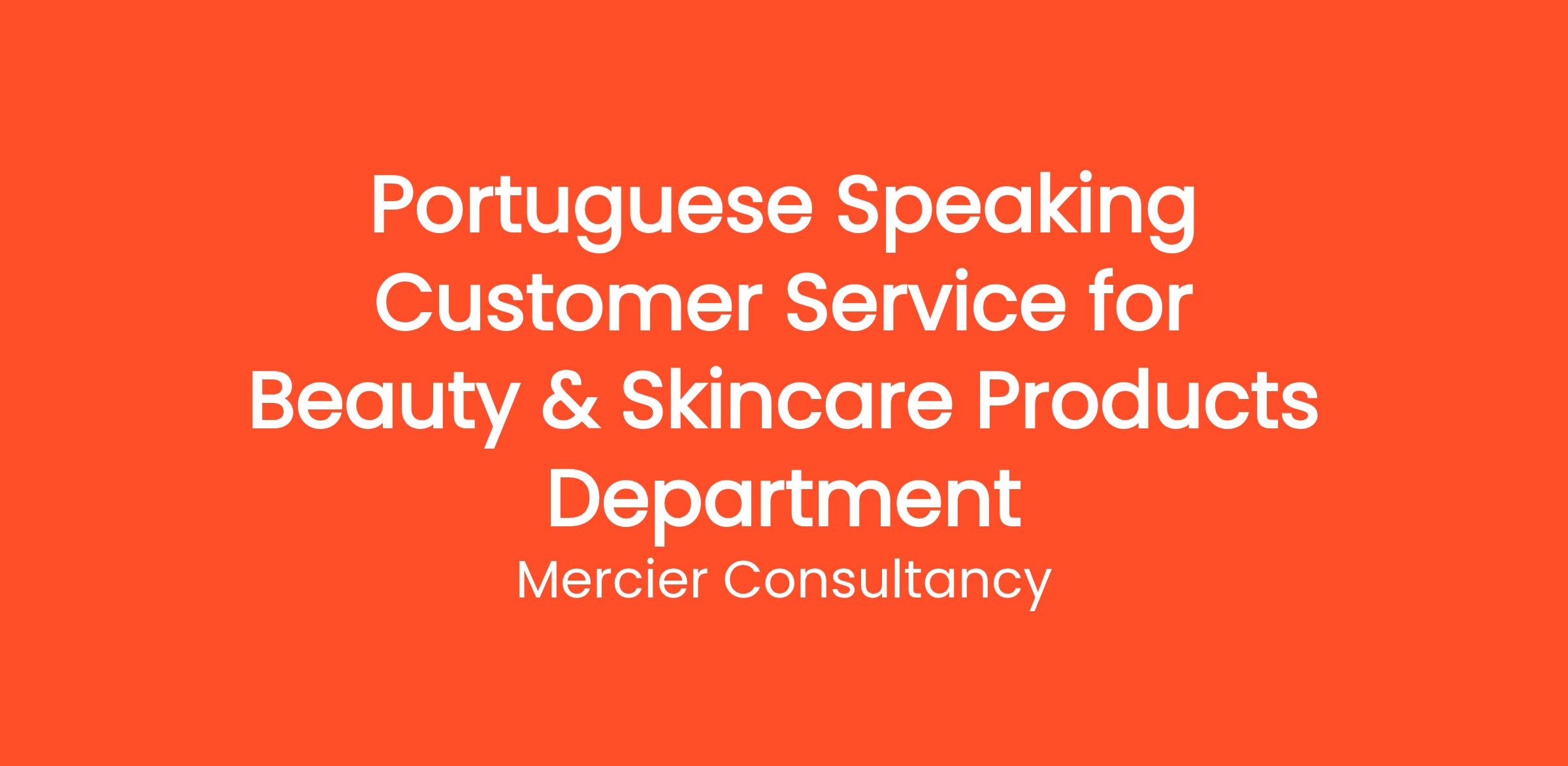 Mercier Consultancy is looking for a motivated Portuguese Speaking Customer Service Representative to join our Beauty & Skincare Products Department for one of our clients. In this exciting Entry Level role, you will provide exceptional support to our Portuguese-speaking customers, assisting them with inquiries about our beauty and skincare products while promoting a positive shopping experience.