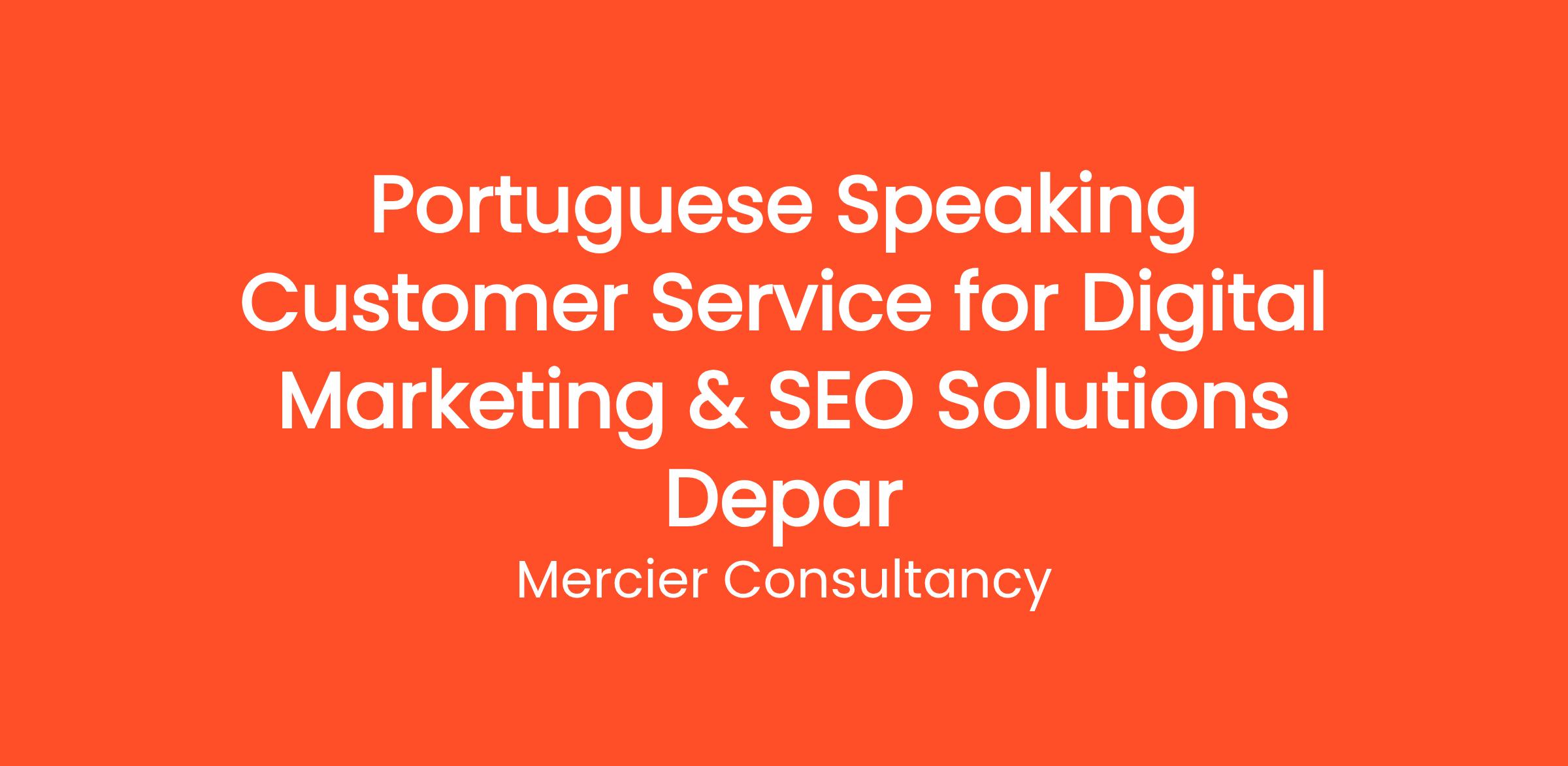 Mercier Consultancy is looking for a passionate Portuguese Speaking Customer Service Representative to join our Digital Marketing & SEO Solutions Department for one of our clients. In this dynamic Entry Level role, you will provide unparalleled support to our Portuguese-speaking clients, assisting them with inquiries related to our digital marketing and SEO services.
