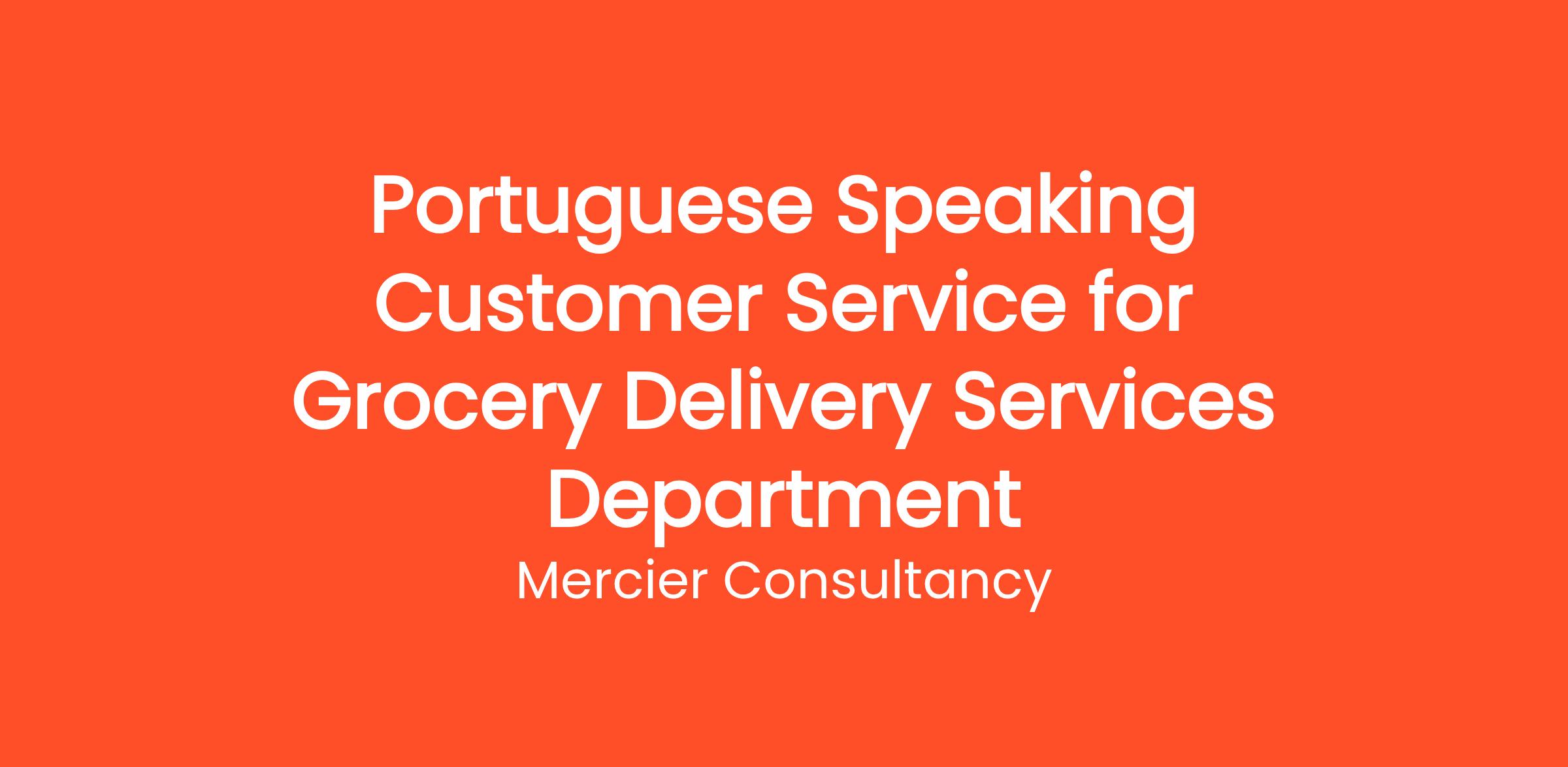 Mercier Consultancy is seeking a dedicated Portuguese Speaking Customer Service Representative to join our Grocery Delivery Services Department for one of our clients. In this Entry Level role, you will provide exceptional support to our Portuguese-speaking customers, helping them with inquiries related to grocery orders, deliveries, and service-related issues.