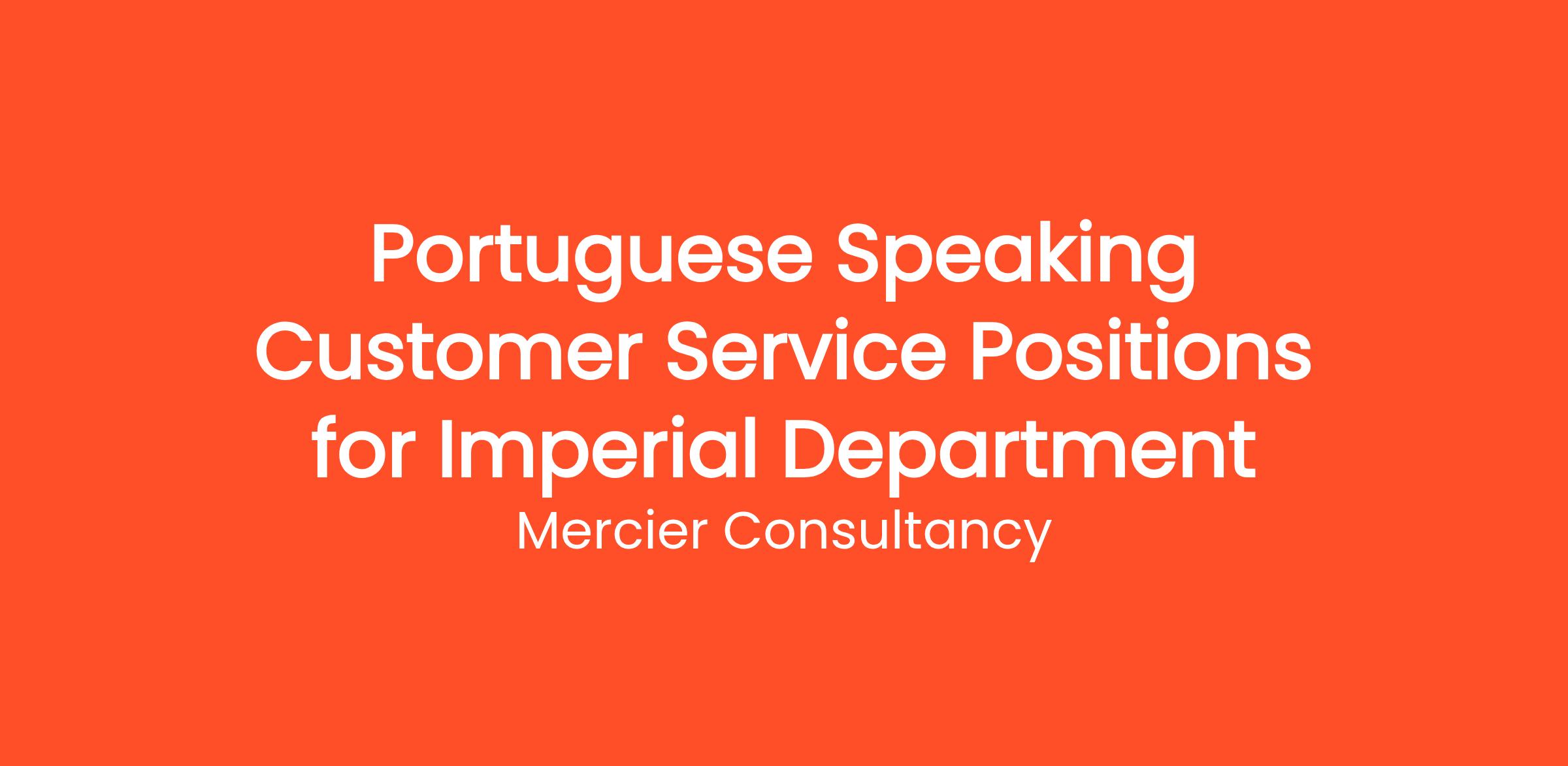 Mercier Consultancy is pleased to offer exciting opportunities for Portuguese Speaking Customer Service Representatives in our Imperial Department. This role is perfect for individuals who are eager to provide excellent customer support while utilizing their language skills in Portuguese.