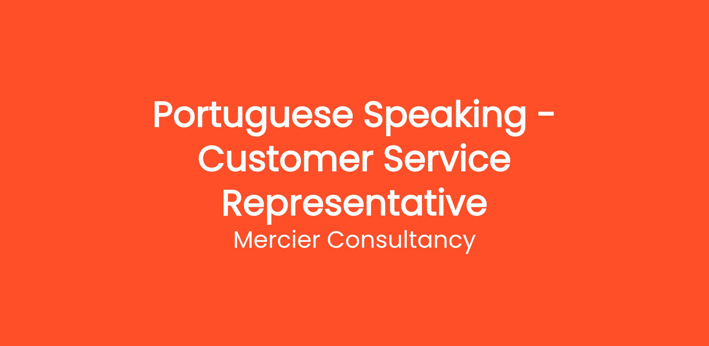 Mercier Consultancy is seeking a Portuguese Speaking Customer Service Representative to join our vibrant team! In this role, you will be the frontline support for our Portuguese-speaking clients, providing exceptional service and resolving inquiries to ensure a positive customer experience. Your language skills will play a vital role in enhancing client relationships and satisfaction.