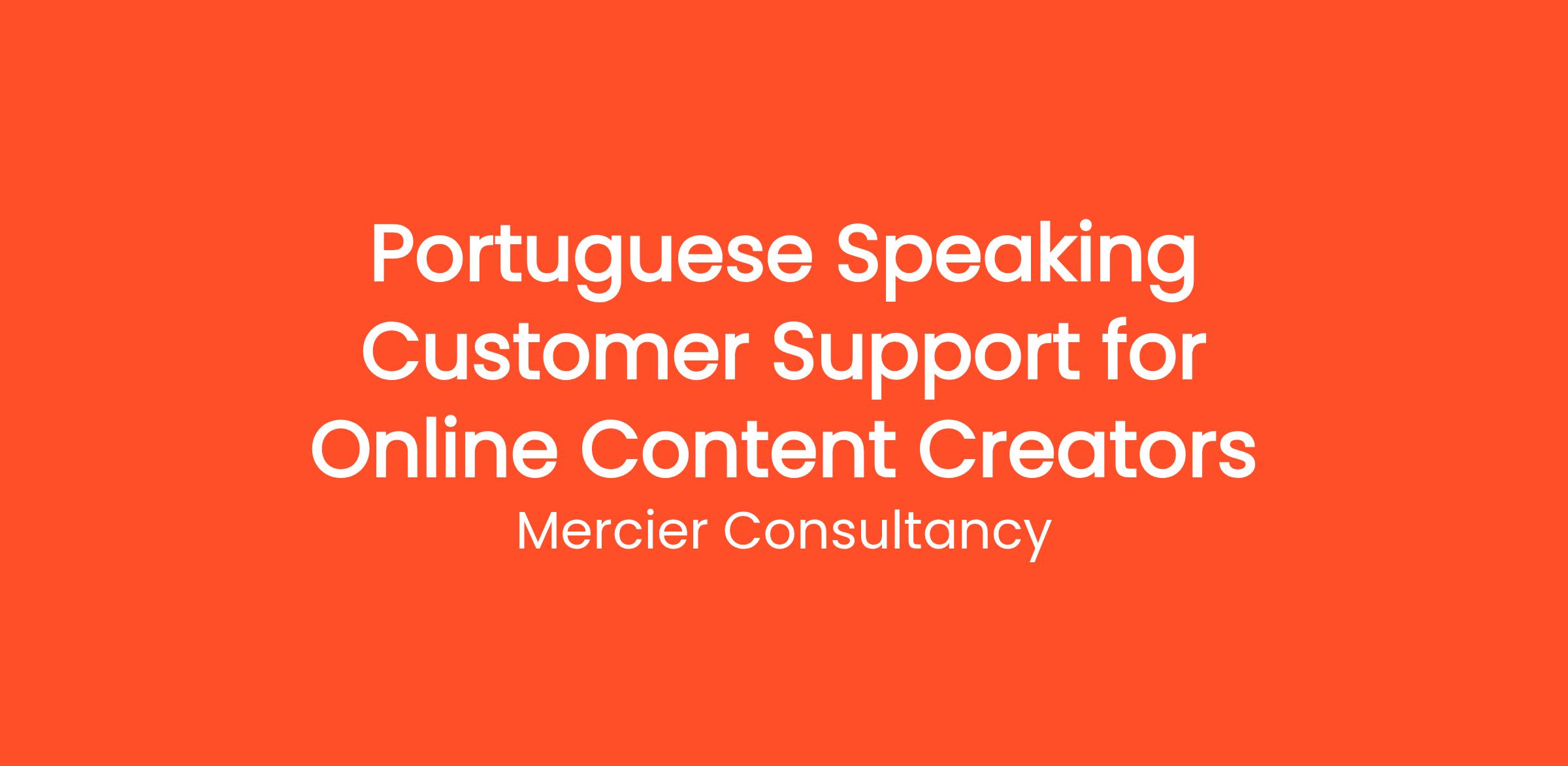 Join our dynamic team at Mercier Consultancy as a Portuguese Speaking Customer Support Representative for Online Content Creators! In this role, you will be at the forefront of assisting our Portuguese-speaking clients who are creating and sharing engaging online content. Your main responsibilities will involve providing top-notch support to these creators, guiding them through our platform and ensuring they have the resources they need to thrive.