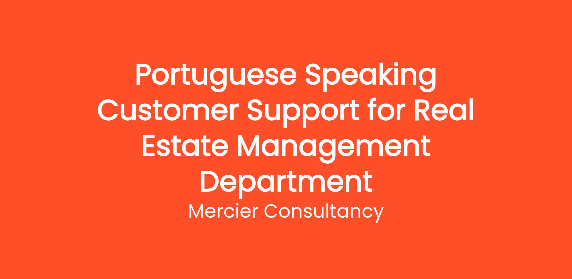 Mercier Consultancy is excited to announce an opening for a Portuguese Speaking Customer Support Representative in our Real Estate Management Department for one of our clients! In this important Entry Level role, you will be the primary point of contact for our Portuguese-speaking clients, providing expert support and assistance related to their real estate inquiries and issues. Your proficiency in Portuguese will be crucial in ensuring effective communication and exceptional service for our clients.