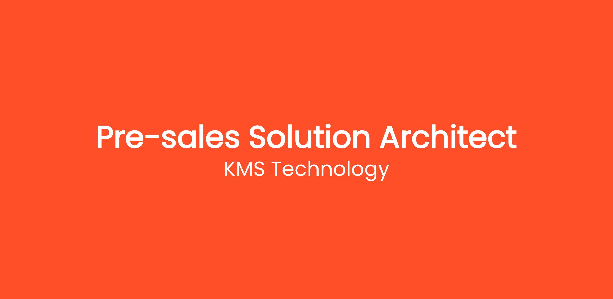 We’re seeking a seasoned Pre-Sales Solution Architect, a pivotal role in shaping tailored, high-impact solutions for prospective and existing clients. Working closely with Sales and Engineering teams, you’ll lead the development and delivery of compelling solution proposals that align KMS’s capabilities with each client’s unique business goals.