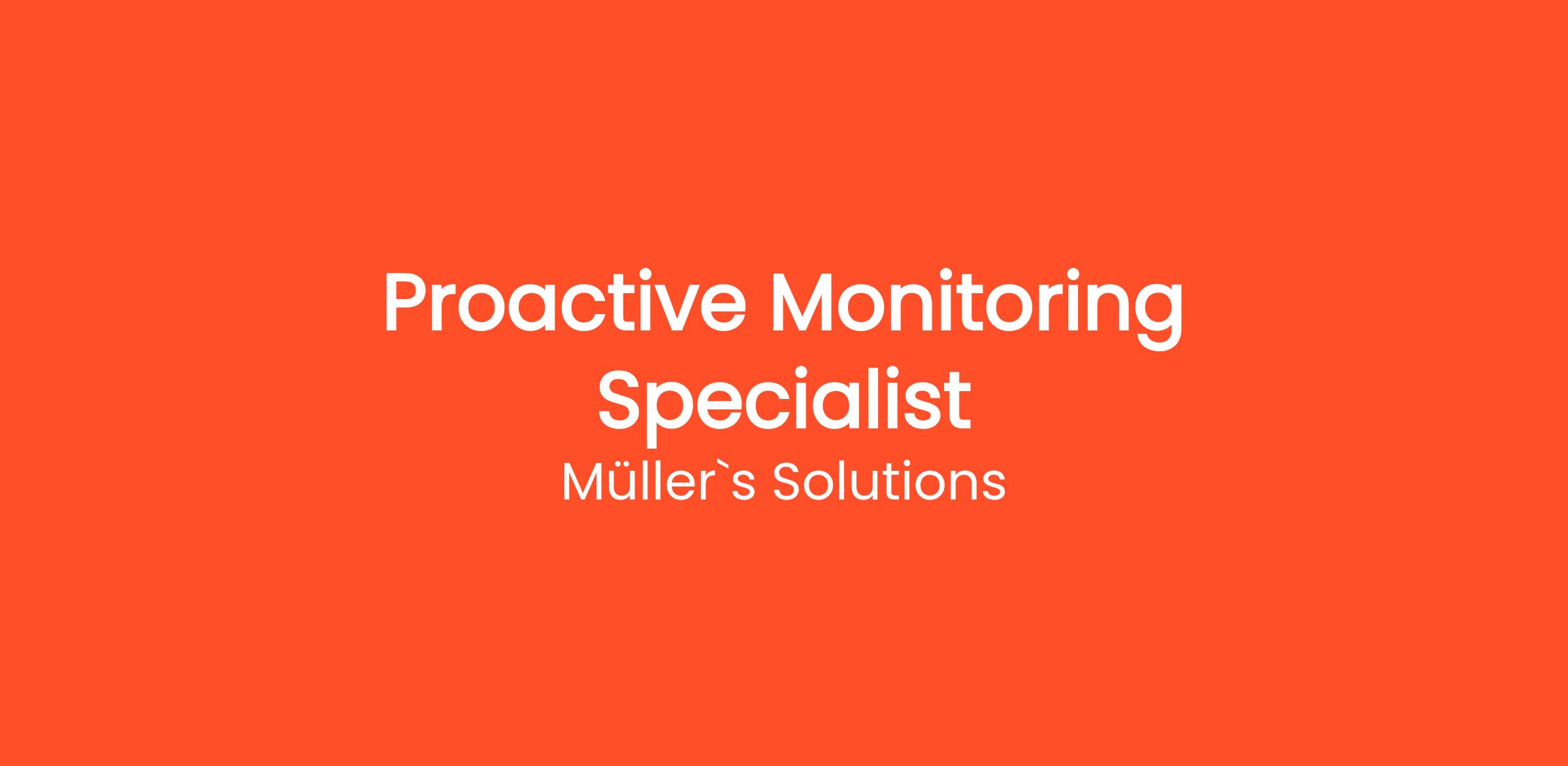 Join our team at Müller's Solutions as a Proactive Monitoring Specialist and help us ensure the smooth and efficient operation of our clients' IT infrastructure. With our focus on Tech Outsourcing, Managed Services, and Global Tech Recruitment, we are committed to delivering top-quality solutions to empower businesses.