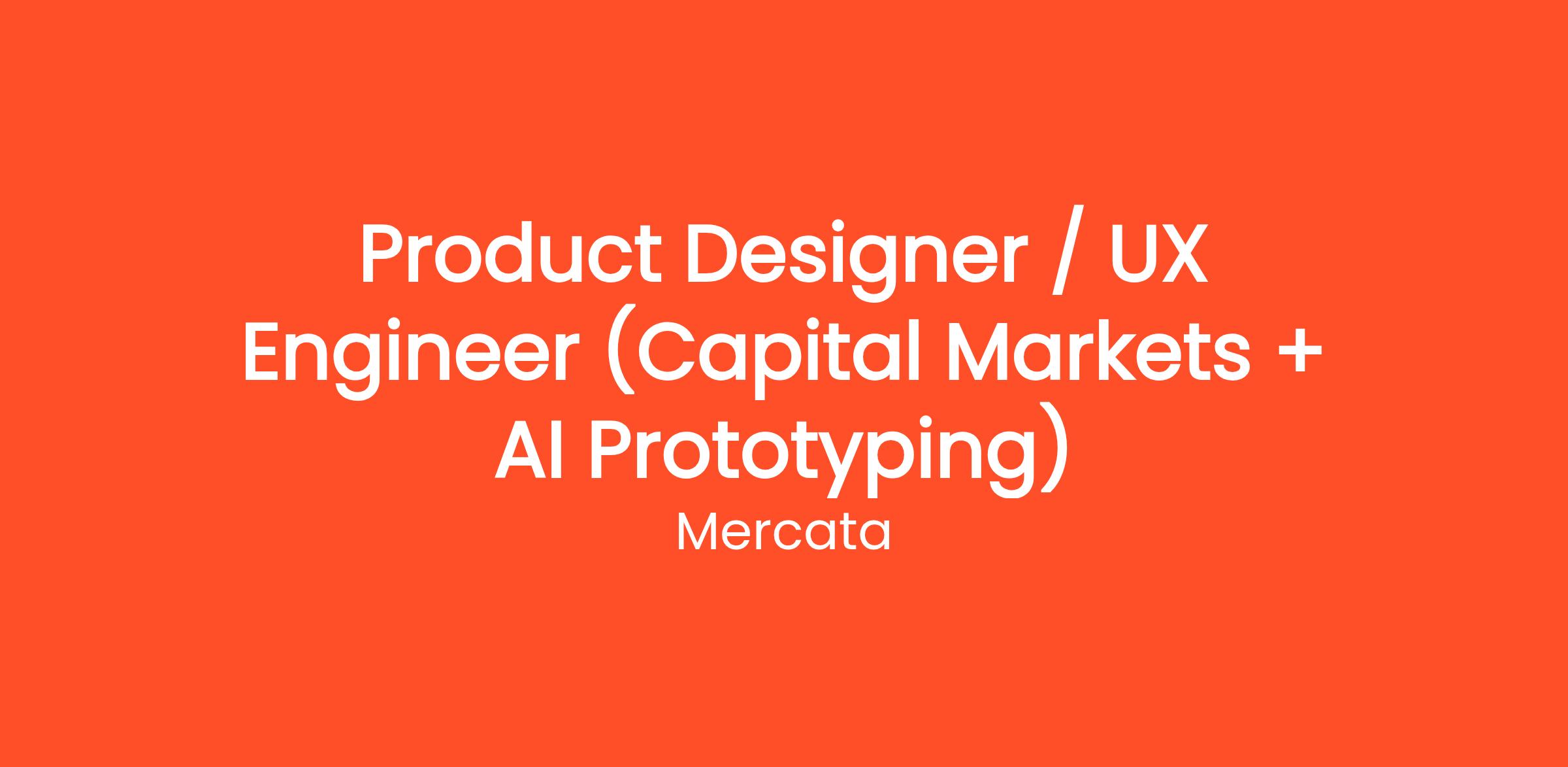 We’re looking for a designer-builder who understands front-office capital markets workflows and can move seamlessly from UX thinking to working prototypes using AI coding tools.