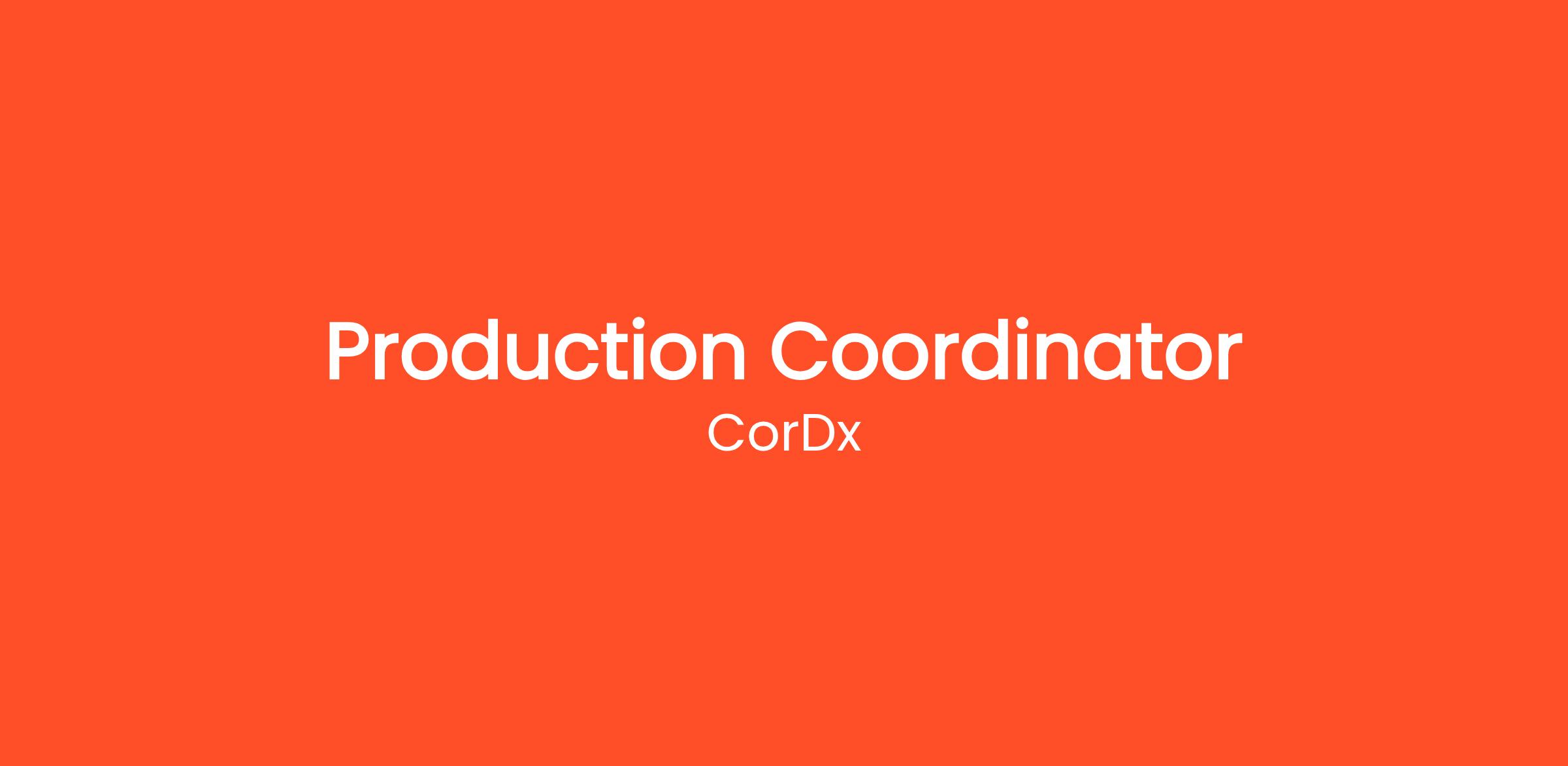 CorDx is a leading biotechnology company that specializes in the development, manufacturing, and distribution of innovative diagnostic solutions. We are looking for a highly motivated and detail-oriented Production Coordinator to support the production team in delivering high-quality products to our clients. As a Production Coordinator, you will work closely with the production team to ensure that all manufacturing processes are carried out smoothly and efficiently. You will also be responsible for organizing and maintaining production schedules, monitoring inventory levels, and coordinating with various departments to ensure timely delivery of products to our customers.